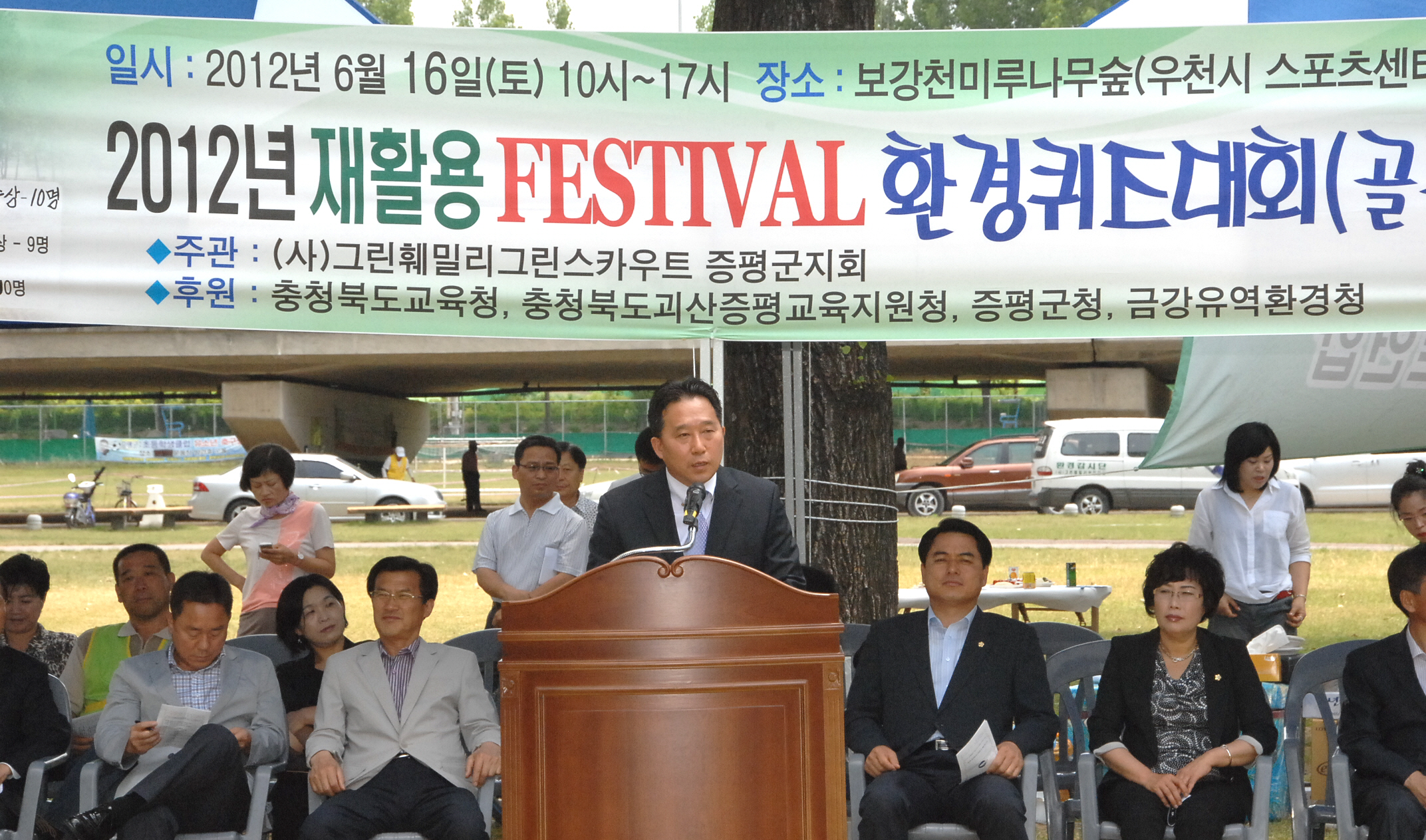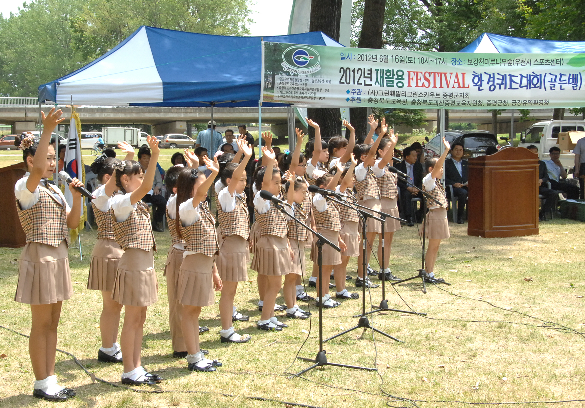 [사] 그린훼밀리운동연합 증평군지부(지부장 김재기)에서는 “2012 재활용 Festival”과 제13회 그린훼밀리 환경의날 기념 사생대회 및 백일장을 16일 보강천 미루나무숲에서 1500여명의 충북 관내 초.중,고등학생이 참여한 가운데 성대하게 개최하였다.[보도자료실 참조]