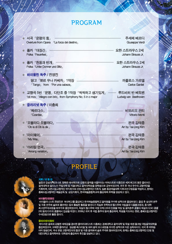 충북도립교향악단(예술감독 겸 상임지휘자 : 이종진)이 오는 7일 오후 7시 증평문화센터 앞 특설무대에서 ‘찾아가는 문화충전소’ 무료 공연을 개최한다. [보도자료실 참조]