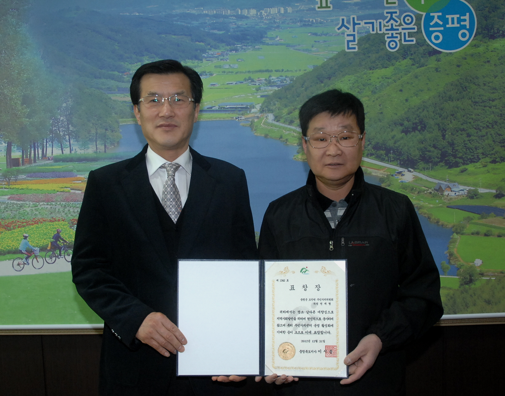 주민자치센터운영 활성화에 기여한 공로를 인정받아 도안면 주민자치위원회 연재형(52)위원이 충북도지사 표창을 수상했다.[보도자료실 참조]