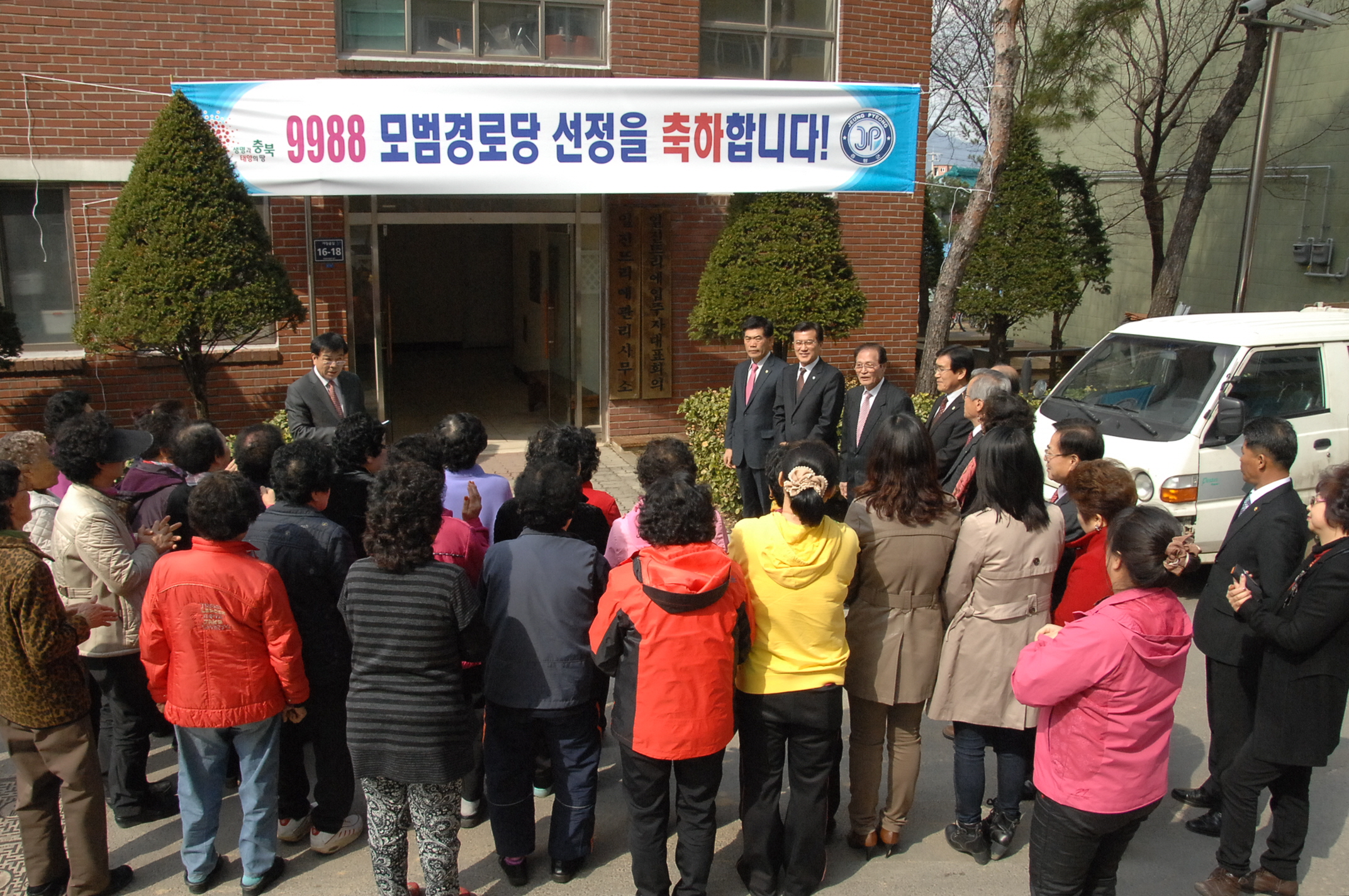 증평군 증평읍 초중8리 일진뜨리에 경로당이 지난해 9988 행복나누미 사업에 적극 참여해 ‘9988 행복나누미’우수 경로당에 선정되어 14일 현판식을 가졌다. [보도자료실 참