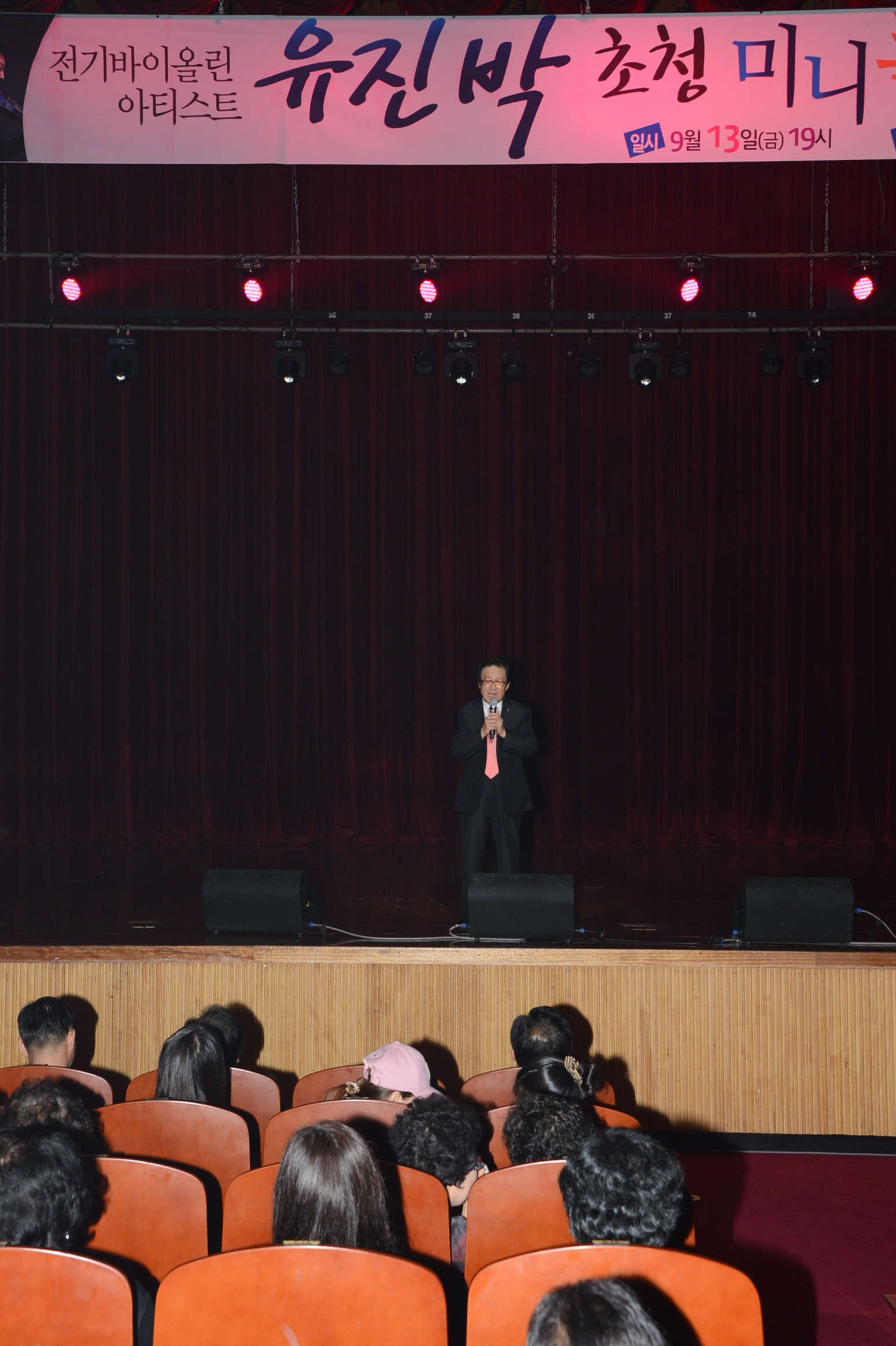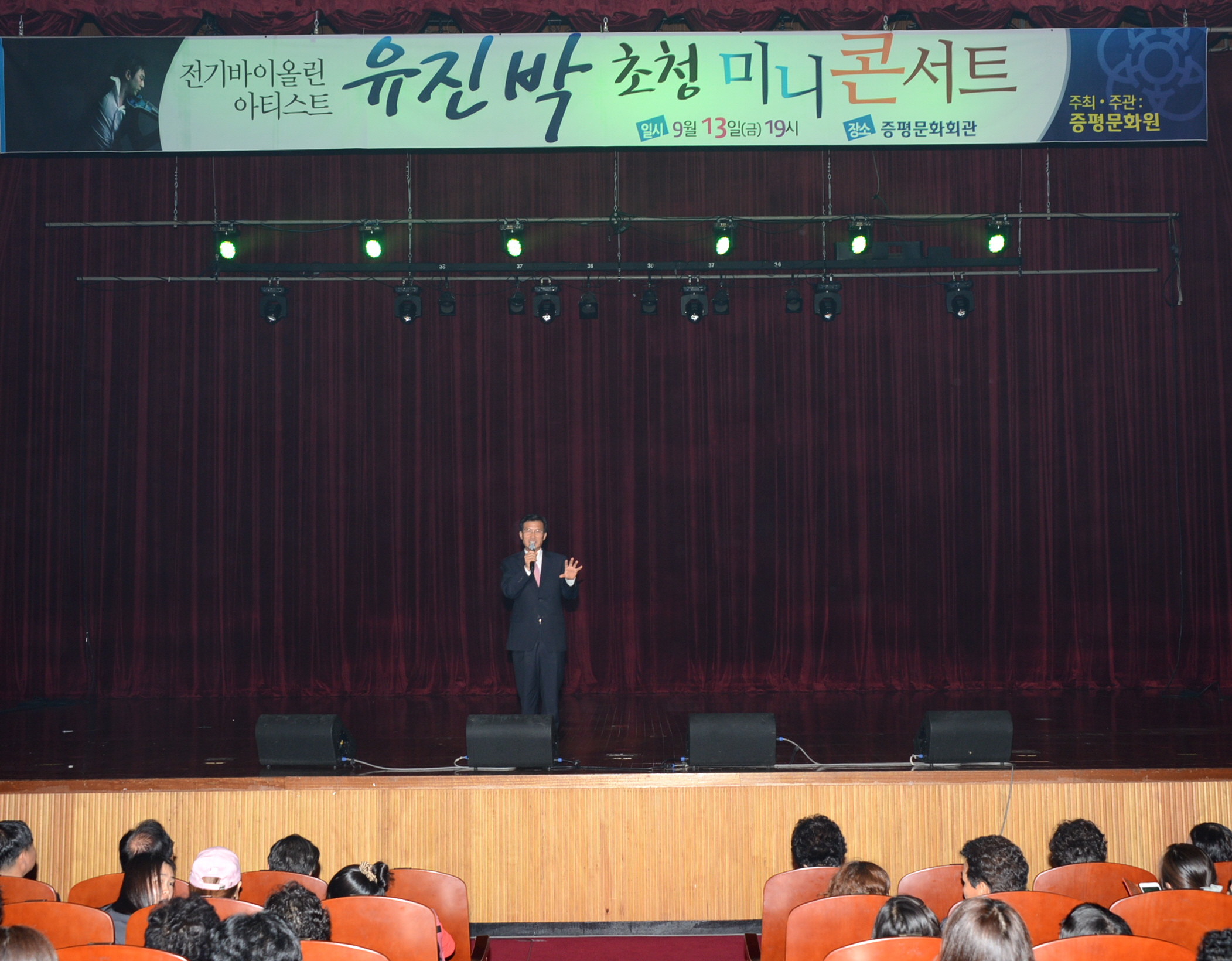 증평문화원(원장 최건성)은 음악이 있는 문화의 거리 조성 일환으로 증평문화센터 야외공연장 개관을 기념해 13일 저녁 7시에 우중관계로 장소를 옮겨 증평문화회관에서 ‘바이올리니스트 유직박 초청 미니콘서트’를 열렀다. [9월 12일 보도자료 참조]