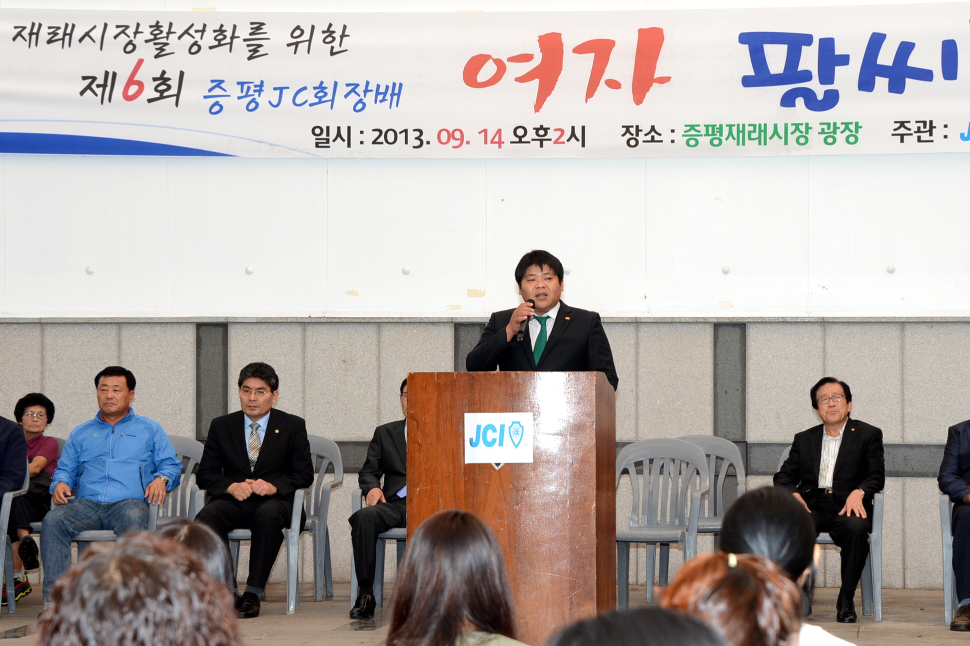 증평군청년회의소(회장 손영주)가 주관하는 제6회 여자팔씨름대회가 재래시장활성화를 위해 14일 토요일 추석을 맞아 전통시장 다목적광장에서 열렸다.[보도자료실 참조]