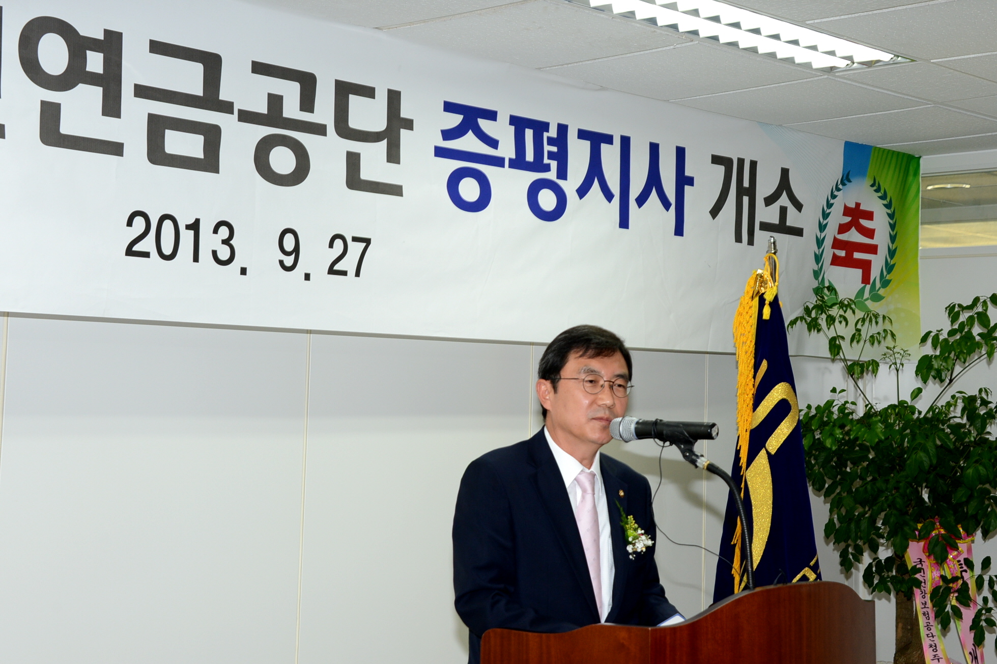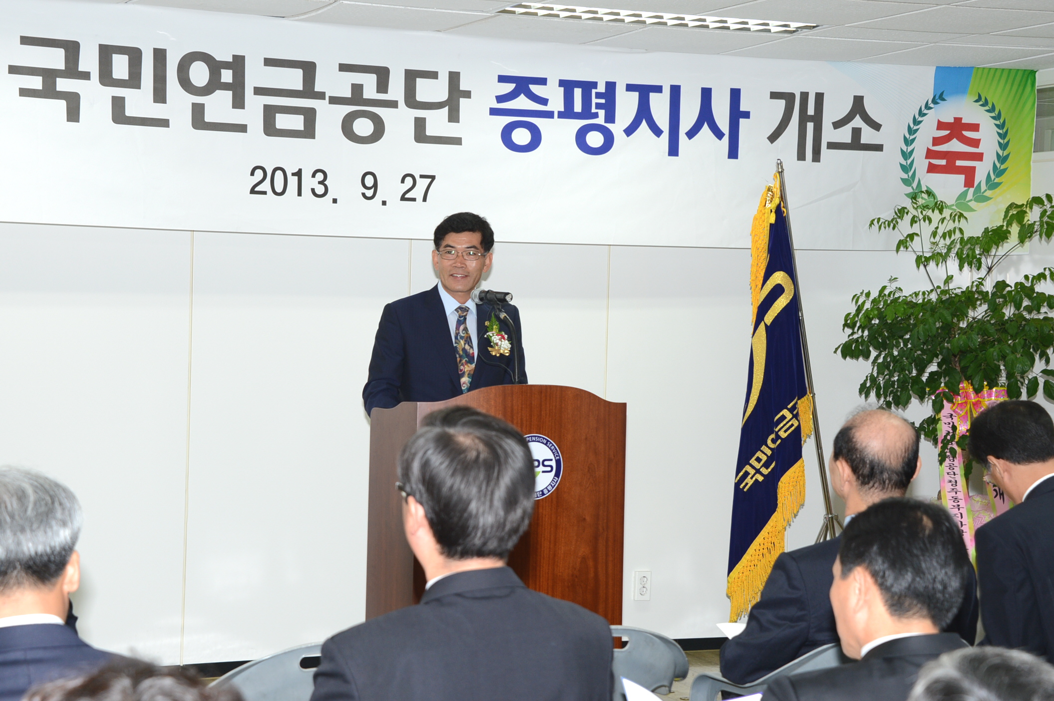 국민연금공단(이사장 최광)은 충북도내 증평, 음성, 진천, 괴산 등 중부 4개군 지역주민의 접근성을 높이고 보다 나은 서비스 제공을 위해 27일 증평군 증평읍 KT 1층에 “국민연금공단 증평지사”를 신설하고, 개소식을 가졌다.[보도자료실 참조]