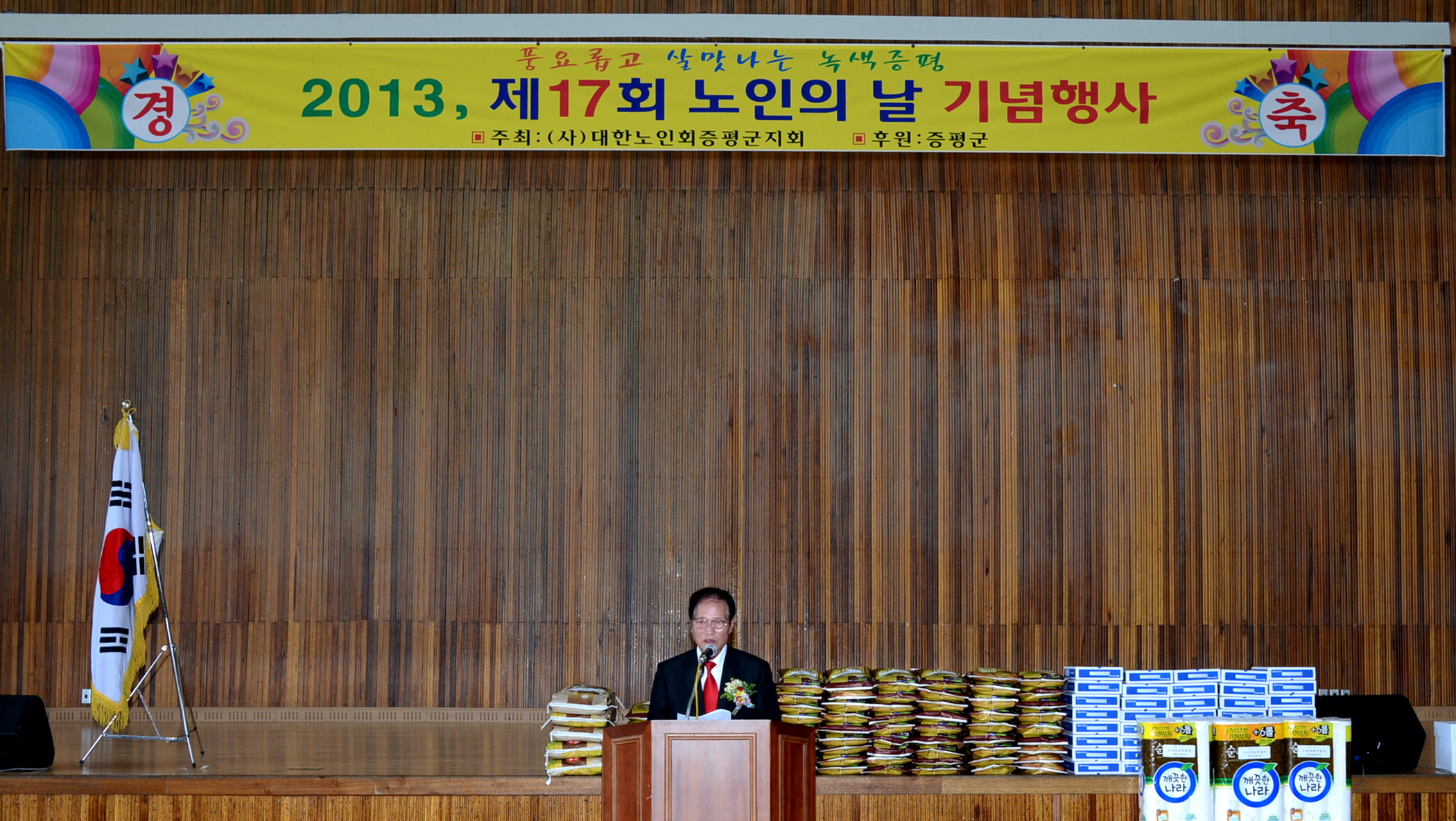 (사)대한노인회증평군지회(회장 김재성)가 주관하는 제17회 노인의날 기념행사가 4일 오전 10시 증평실내체육관에서 각급 기관단체장, 어르신 및 가족 등 1000여명이 참여한 가운데 열렸다. [보도자료실 참조]