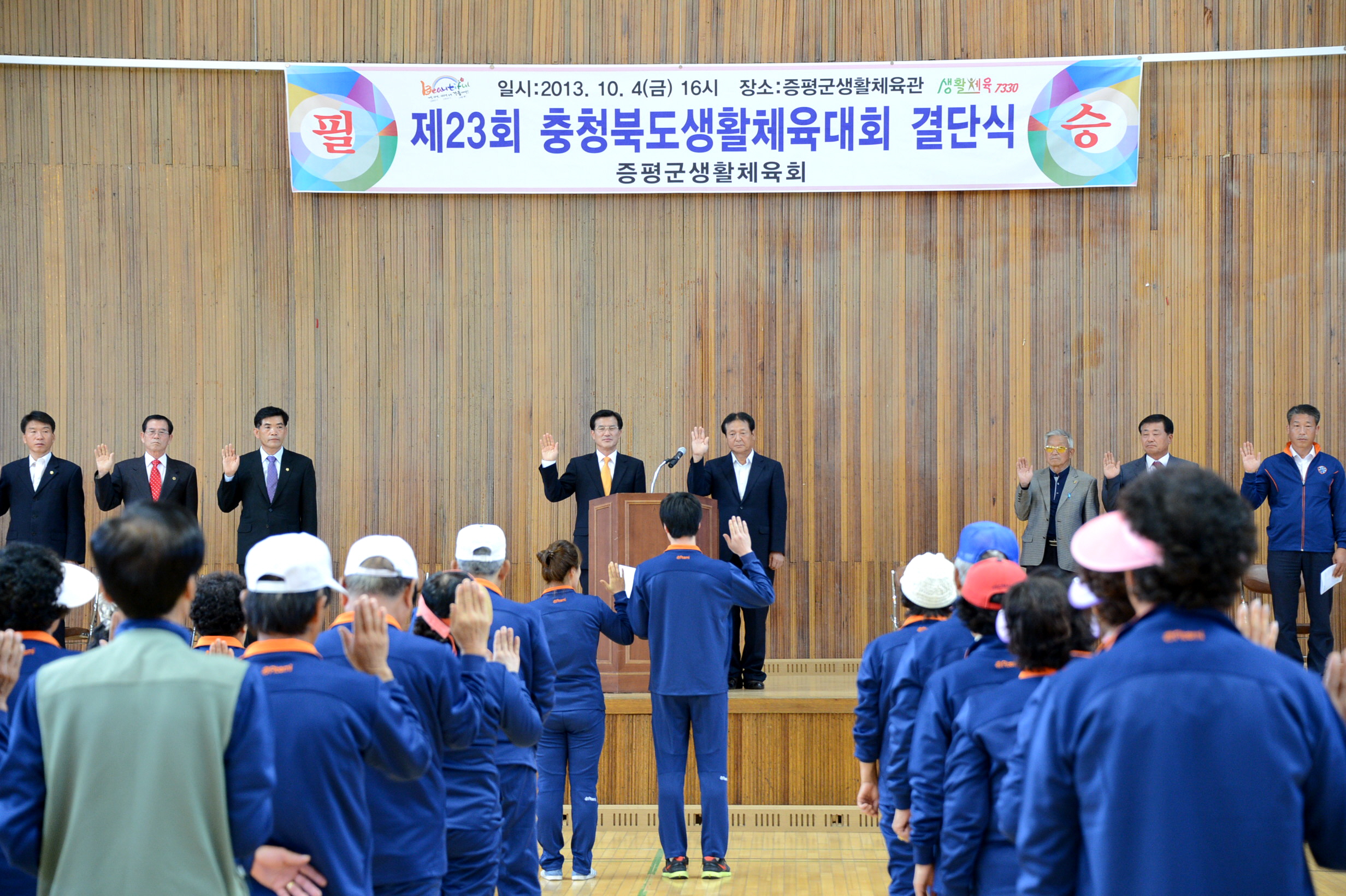 5일과 6일 충주에서 열리는 제23회 충북생활체육대회 결단식이 4일 오후4시 증평실내체육관에서 열렸다.
