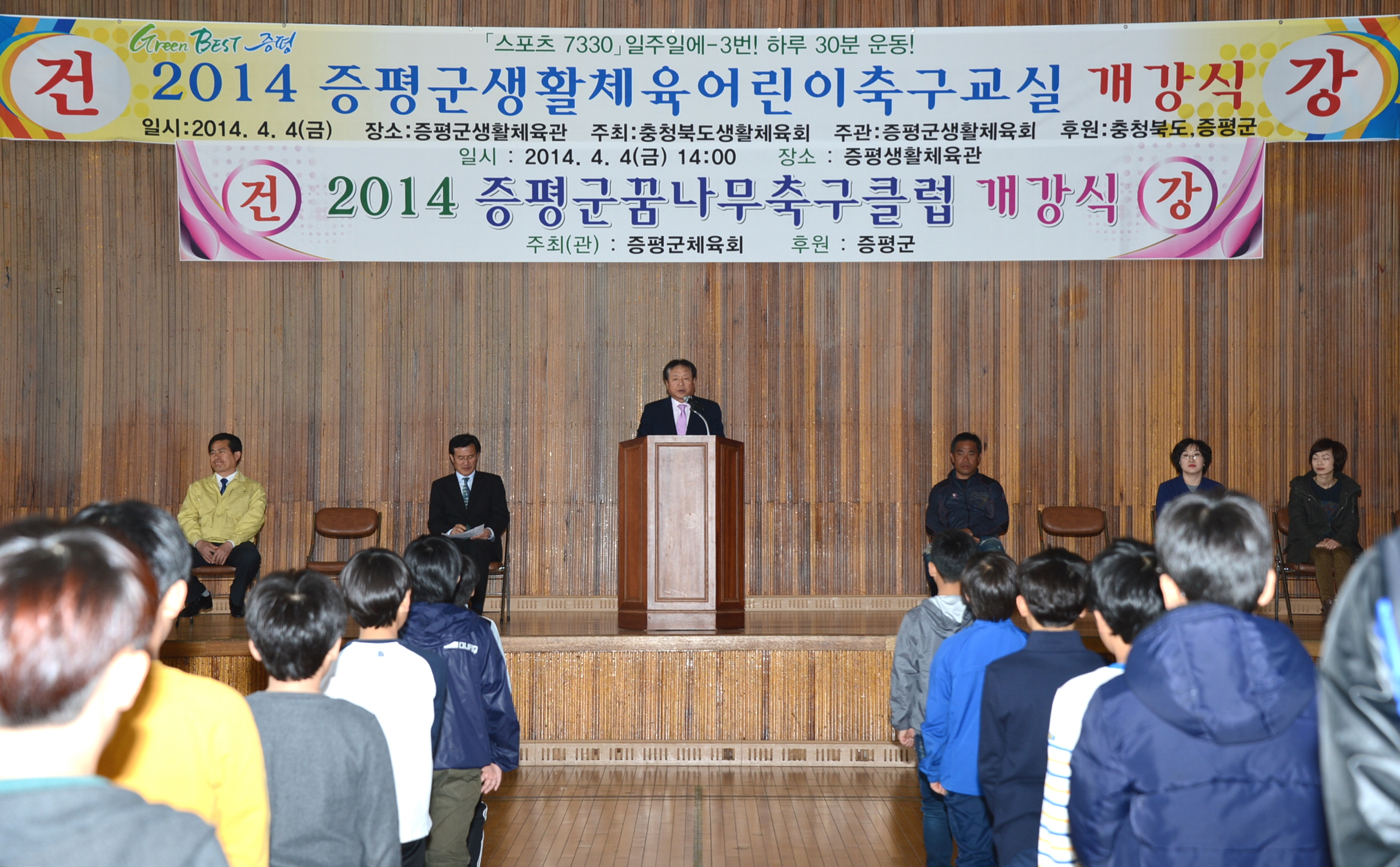 2014 생활체육꿈나무 어린이축구교실 개강식이 4일 오후 2시 증평생활체육관에서는 축구교실 어린이 25명과 학부모, 관계자 등 40여명이 참석한 가운데 개강식을 가졌다. [보도자료실 참조]