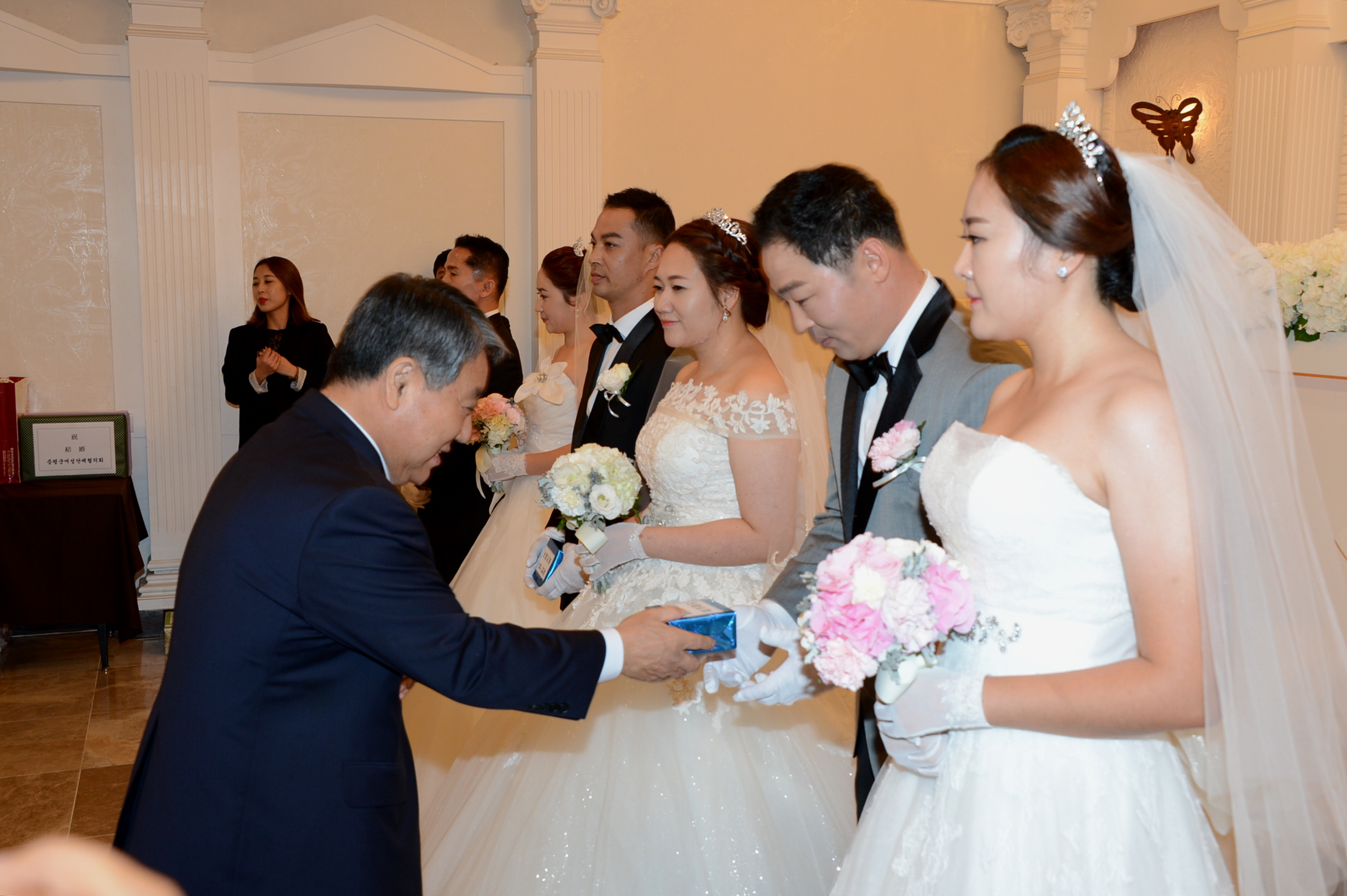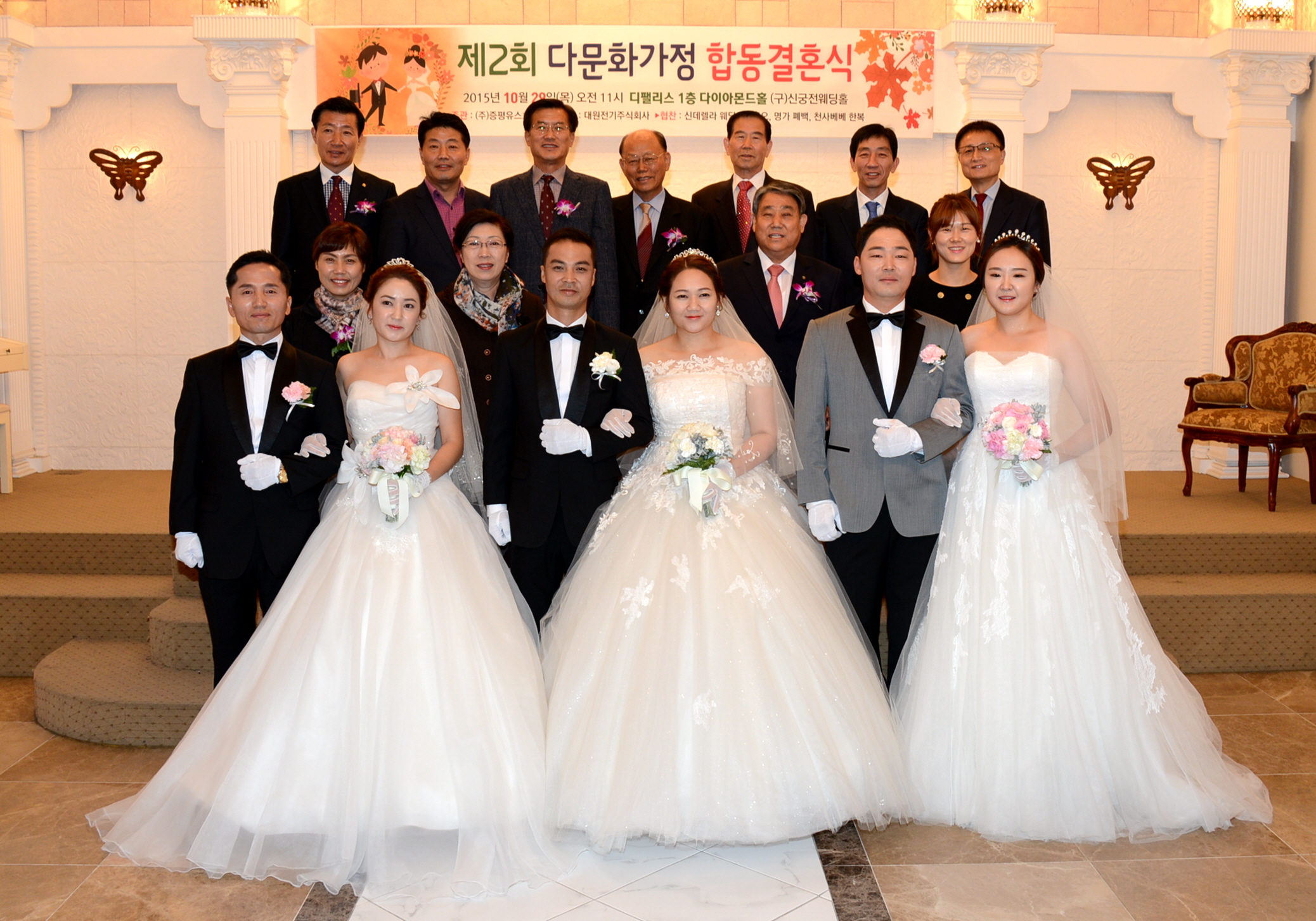 증평군에서는 29일 오전 11시 증평읍 디팰리스웨딩홀에서 개인사정으로 결혼식을 올리지 못한 결혼이주여성부부 3쌍의 다문화가정 합동결혼식이 열렸다.(보도자료실 참조)