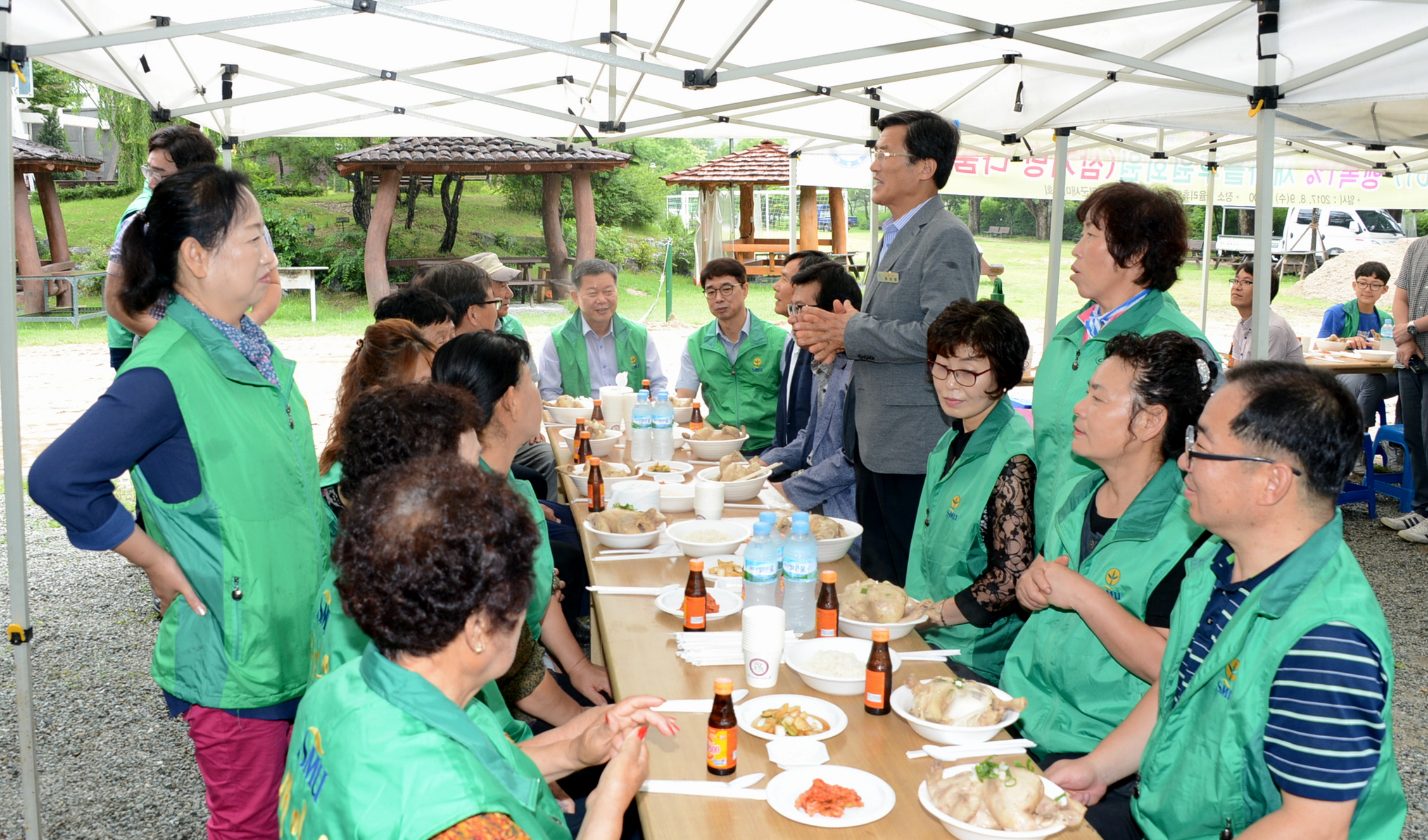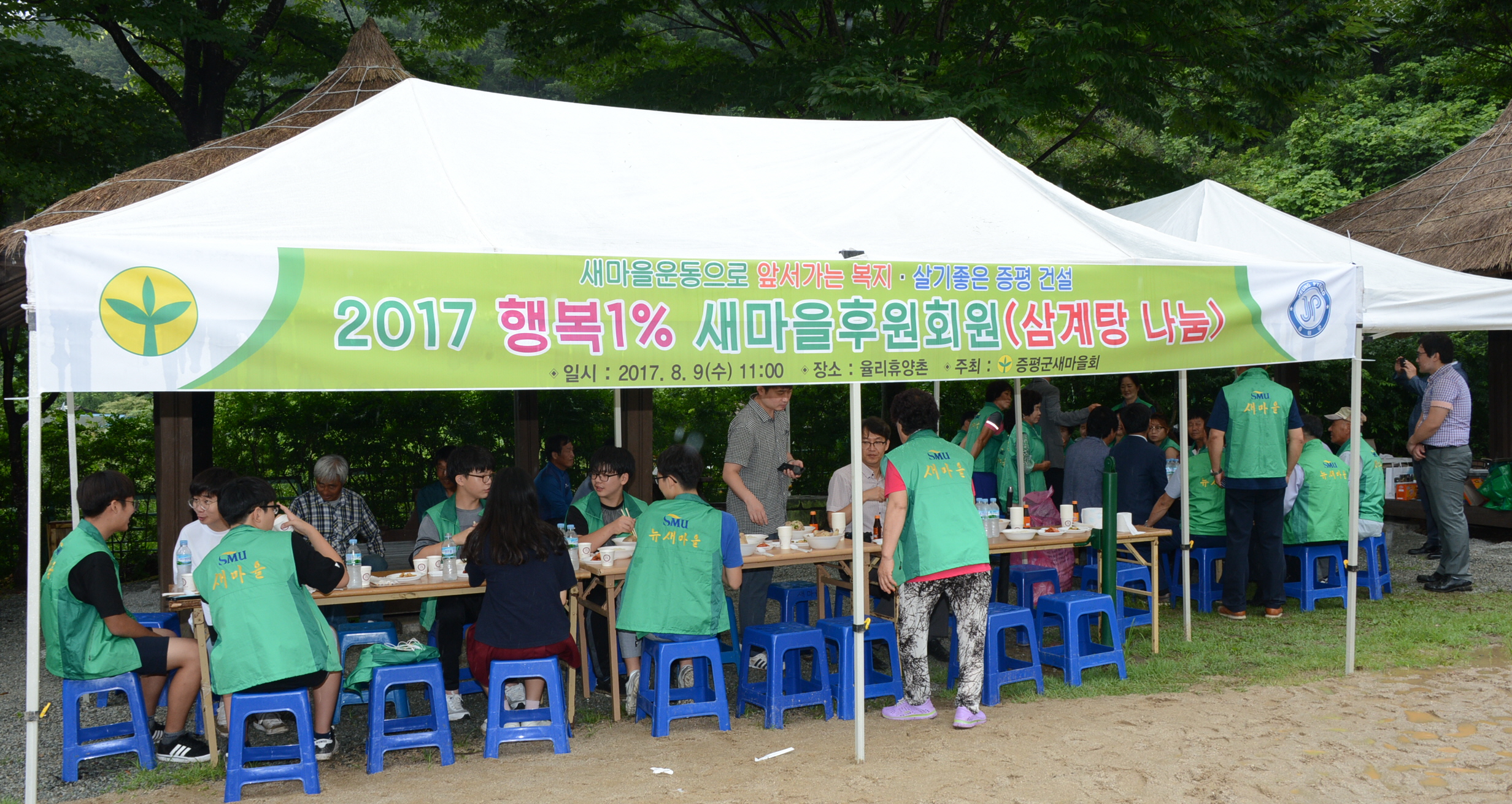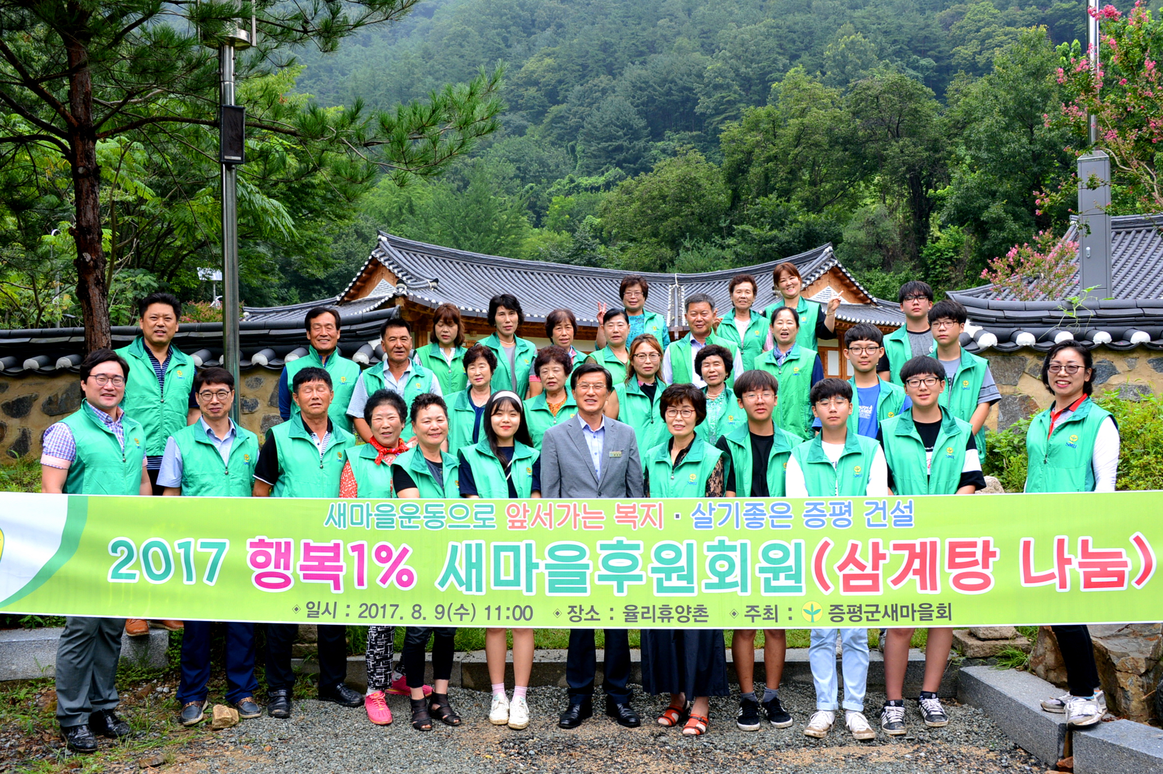 증평군새마을회(회장 정현숙)는 9일 율리휴양촌에서 새마을후원회원과 새마을지도자 100여명이 참석한 가운데 ‘2017 행복1% 새마을후원회원 삼계탕 나눔 행사’를 열었다.(보도자료실 참조)