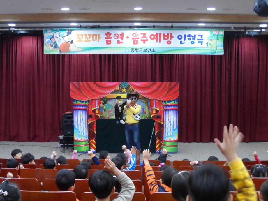증평군보건소(소장 김동희)에서 운영하는 꼬꼬마 흡연 음주예방 인형극‘꼴초 사냥꾼의 최후’가 큰 인기를 끌고 있다.