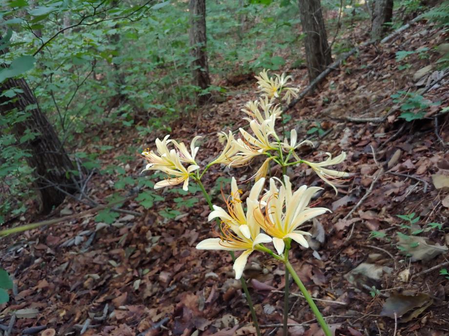 증평군 좌구산휴양랜드 내 바람소리 길을 따라 곳곳에 핀 상사화가 방문객의 눈을 즐겁게 하고 있다.