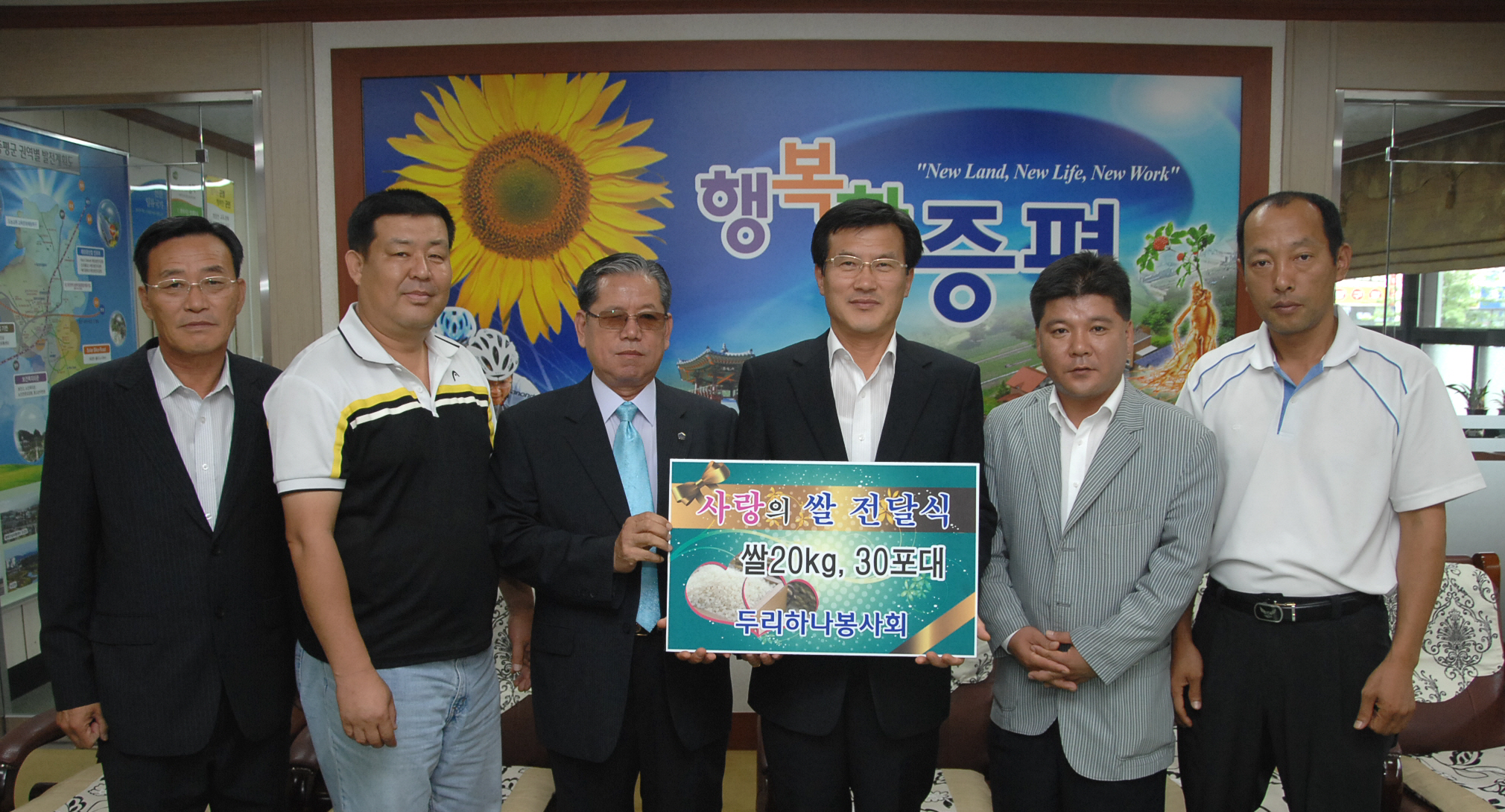 증평군 두리하나봉사회(회장 이홍섭)는 8일 오후 3시 증평군청을 방문해 지역 내 불우한 이웃을 위해 써 달라며 20kg 들이 쌀 30포를 기탁했다. [보도자료실 참조]