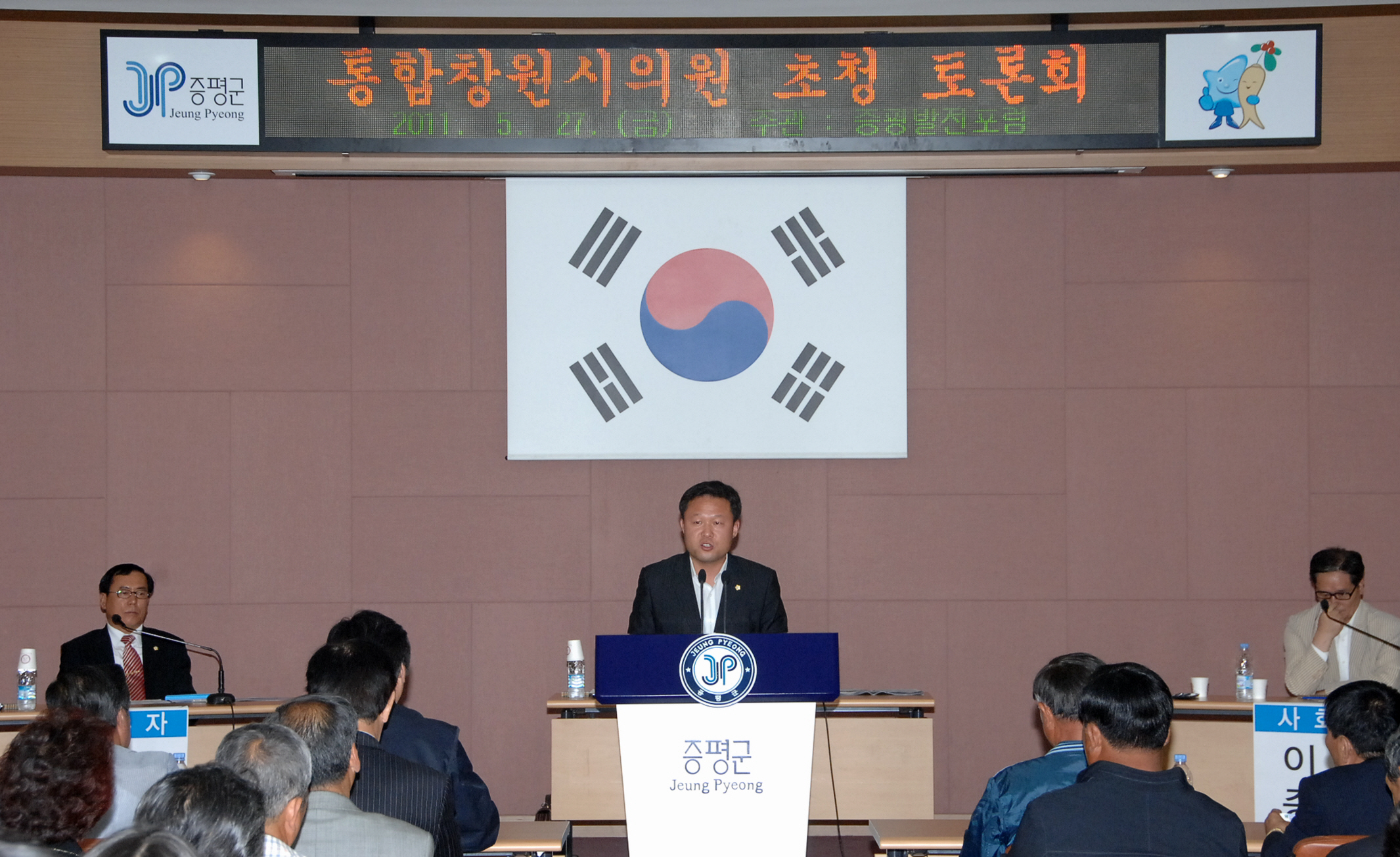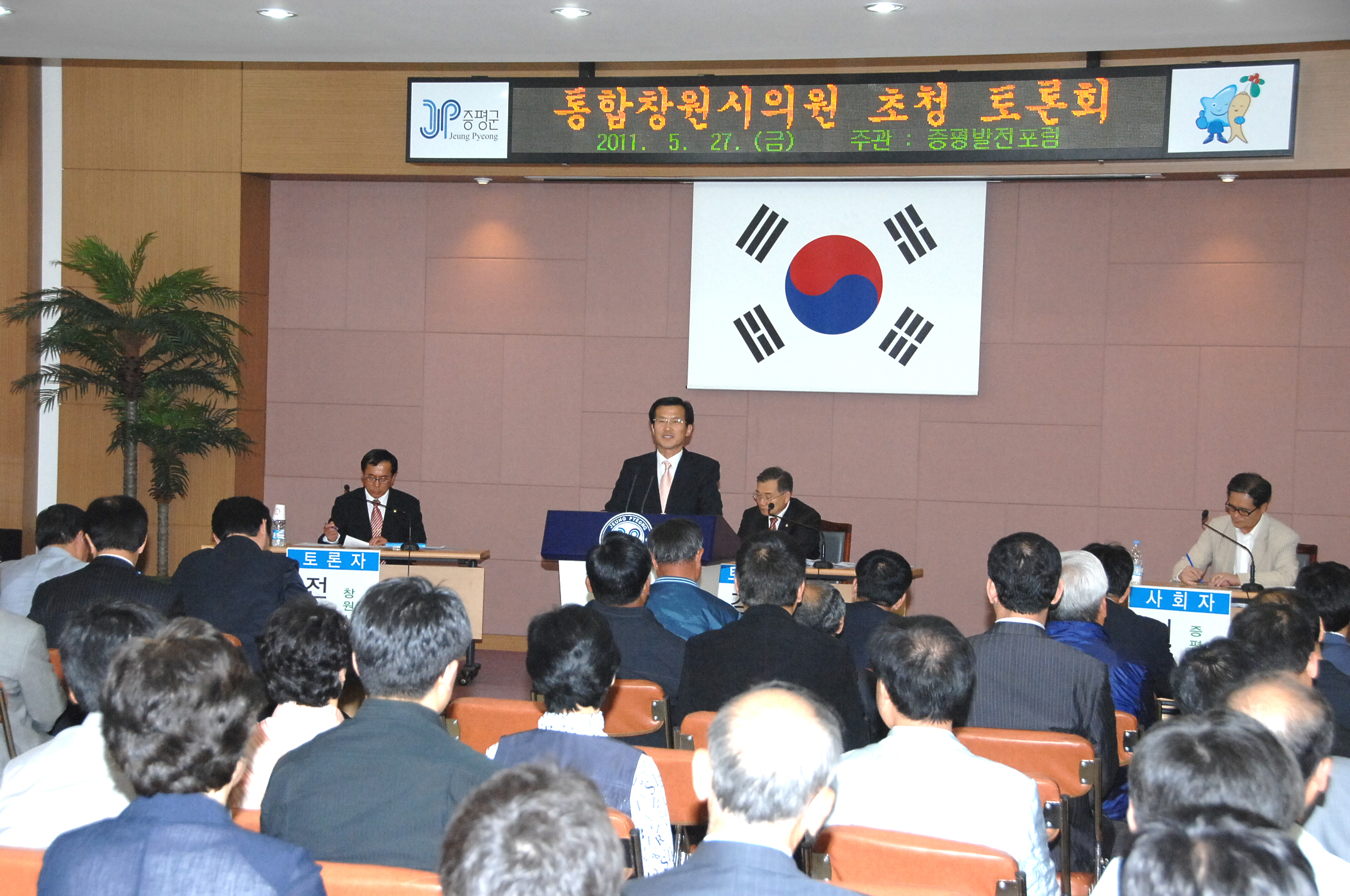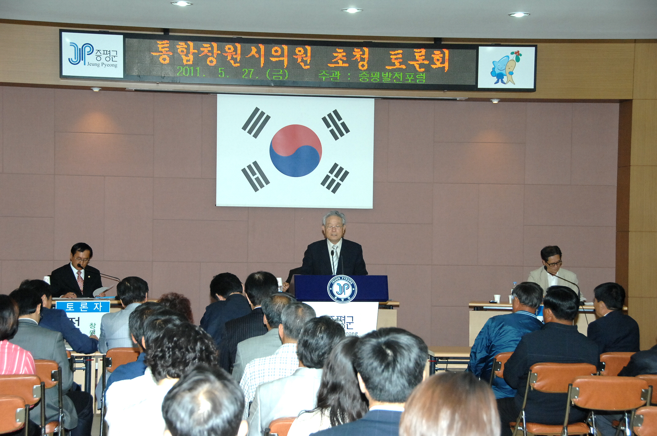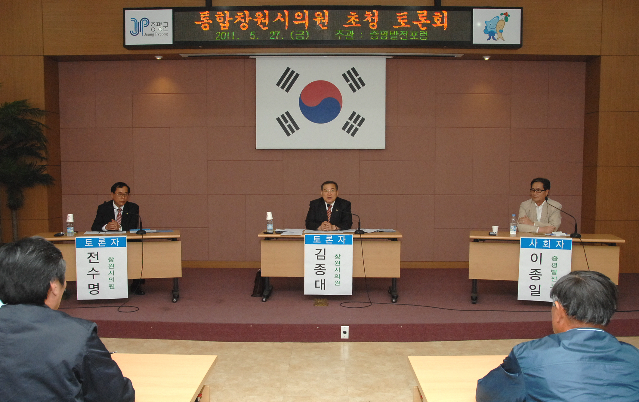 증평발전포럼(대표 김기환)이 주관하는 통합창원시 의원 군민 대토론회가 27일 호후2시 증평군청 2층 대회의실에서 열렸다.