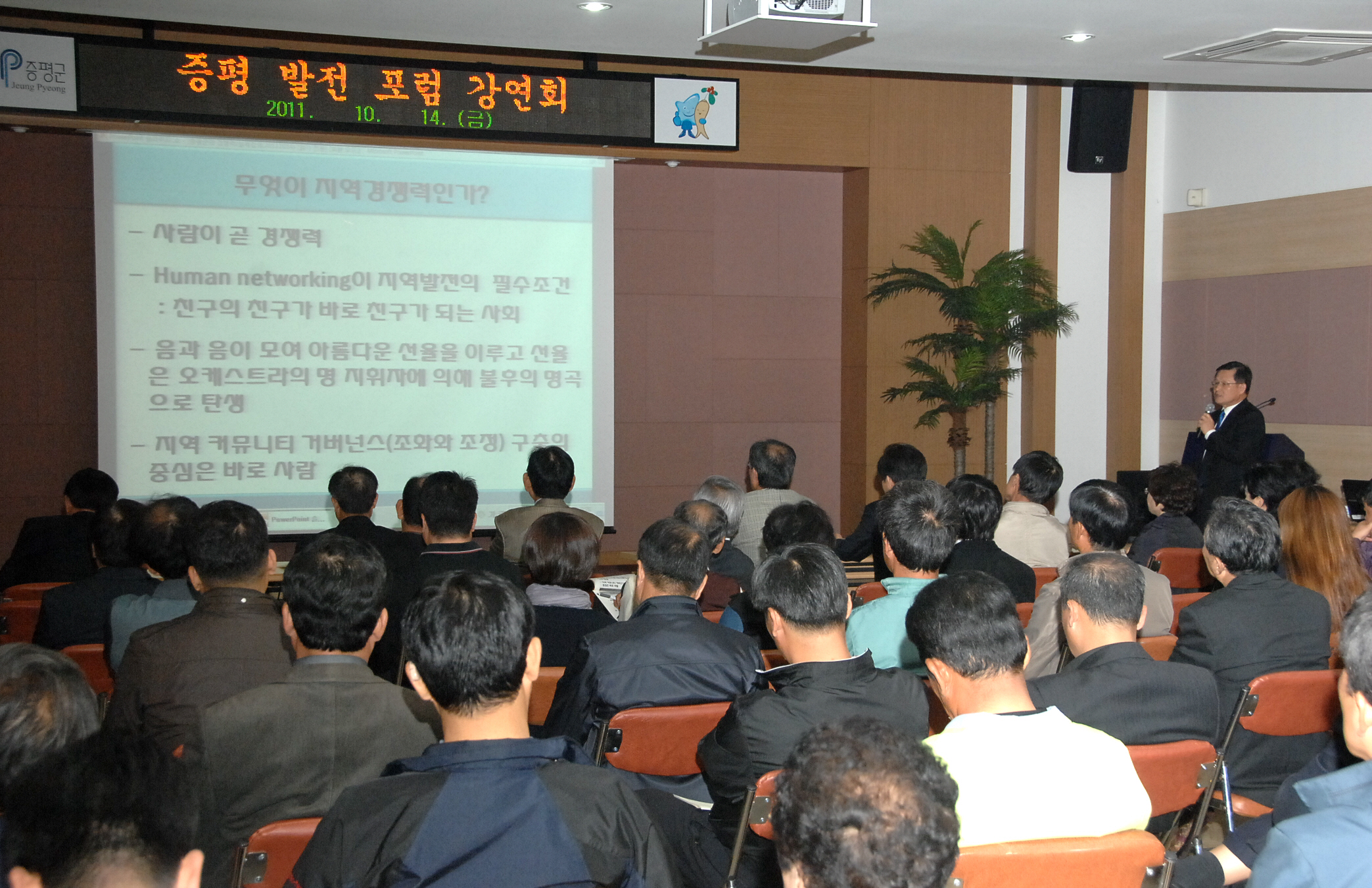 증평발전포럼(회장 김기환)은 14일 오후 2시 증평군청 대회의실에서 지역의 발전방향을 모색하는 지역발전 전략 강연회를 개최했다.[보도자료실 참조]