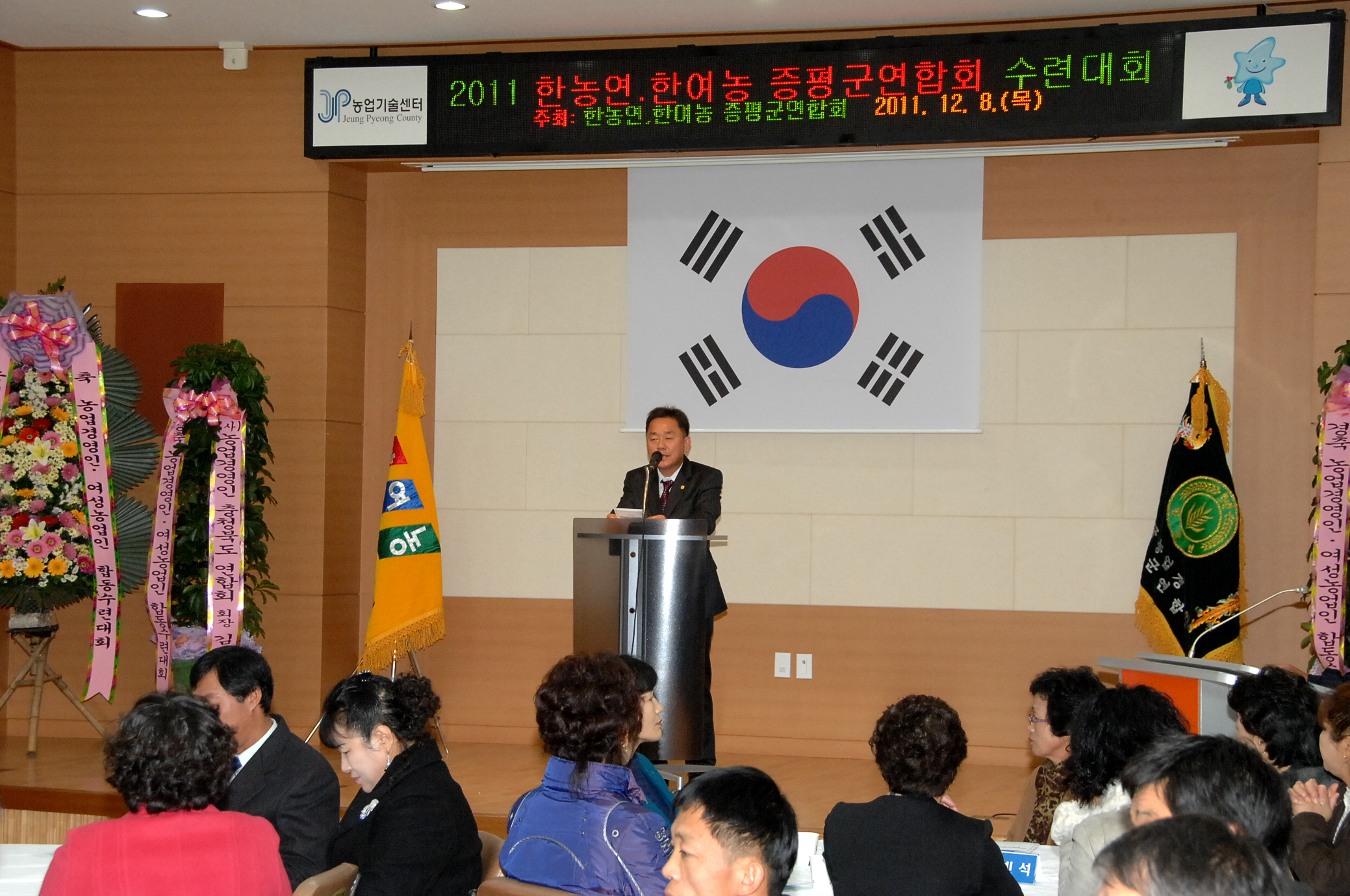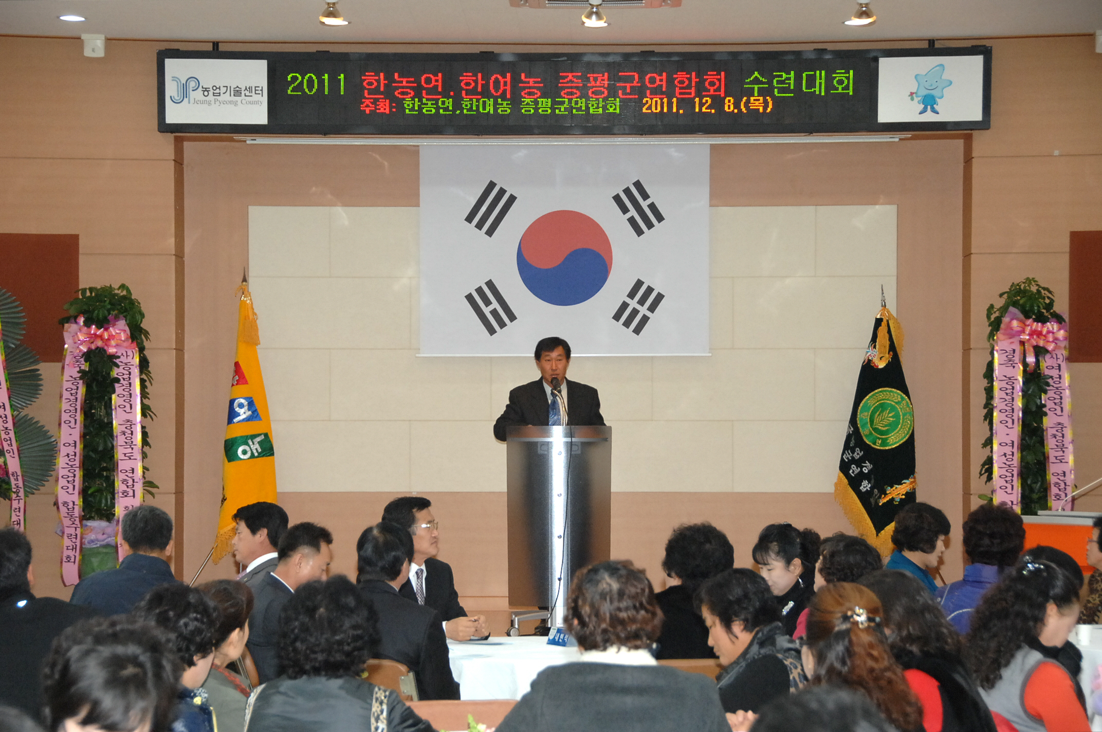 증평군 농업경영인(회장.이채희)과 여성농업인회(회장.길금환) 합동수련회가 8일 오전 11시 증평군 농업기술센터 농업인문화관에서 지역 내 기관단체장들과 남·여 농업인 회원 등 약 100여명이 참석한 가운데 열렸다.[보도자료실 참조]