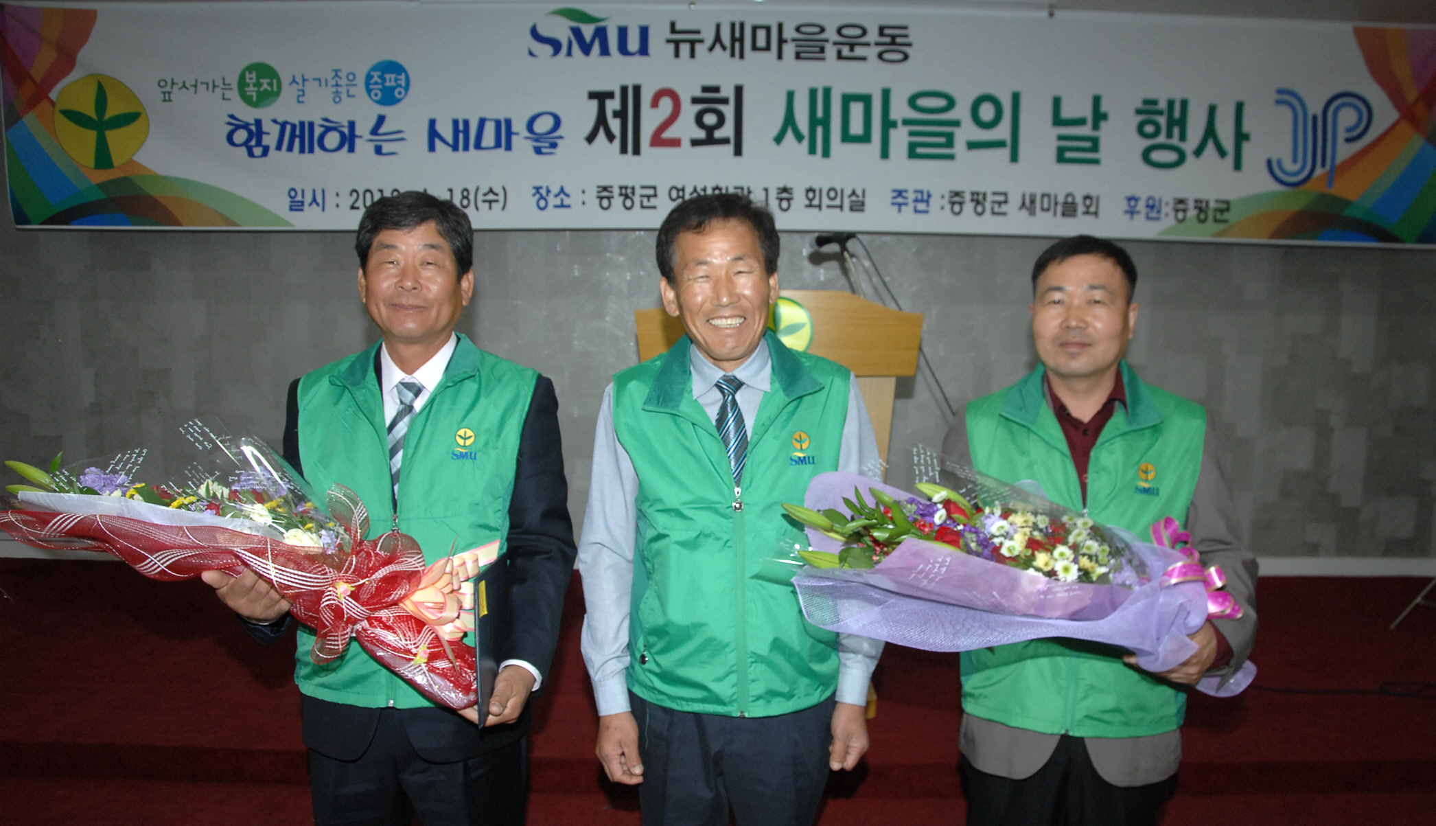 증평군새마을회(회장 강성오)는 18일 오전 11시 증평군 여성회관에서 홍성열 증평군수, 새마을회원, 각급 기관·사회단체장 등 100여명이 참석한 가운데 ‘제2회 새마을의 날 기념행사’를 개최했다.[보도자료실 참조]