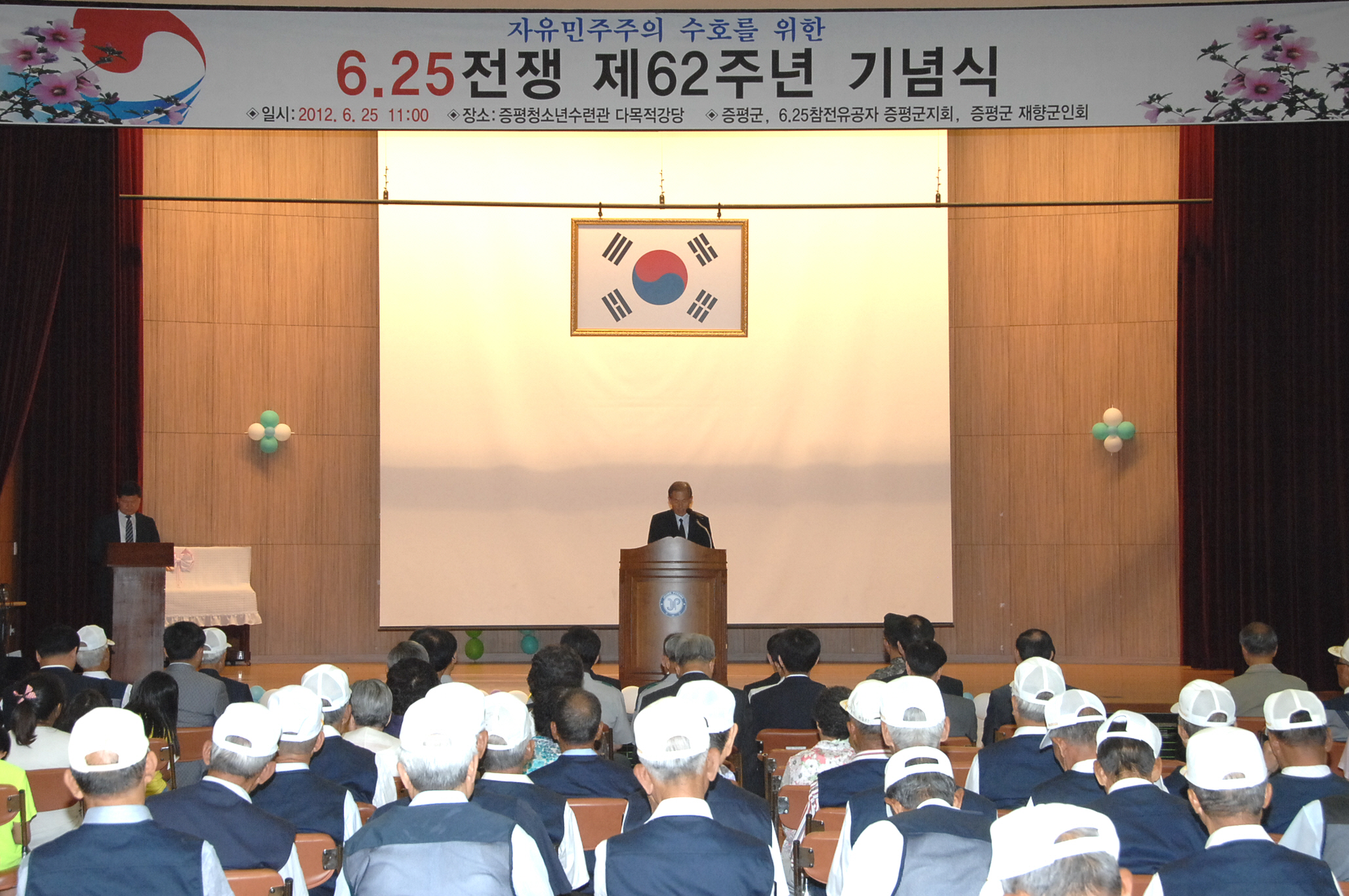 6.25 전쟁 62주 년 기념식이 25일 오전 11시 증평읍 내성동 충혼탑과 청소년 수련관에서 홍성열군수, 김재룡군의장, 김봉회도의원을 비롯한 기관단체장과 보훈단체 및 유가족, 학생 등 300여명이 참석한 가운데 증평재향군인회(회장 육재동) 주관으로 열렸다.