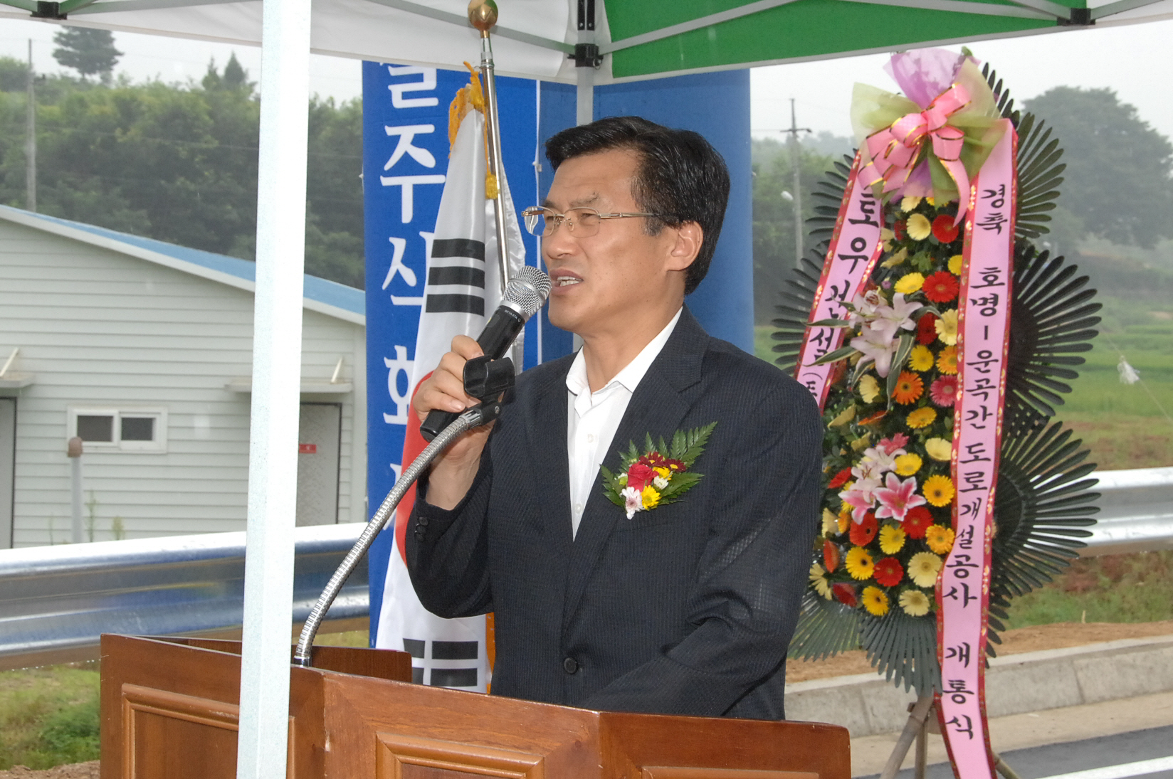 증평읍 용강리 한국교통대학교 앞에서 증평읍 덕상리 지방도 540호선까지를 연결하는 군도 6호선 호명~운곡 간 도로개설공사가 완료됨에 따라 시공사인 토우건설은 10일 오전10시 증평읍 덕상리 장봉마을 앞에서 도로의 개통식을 가졌다. [보도자료실 참조]