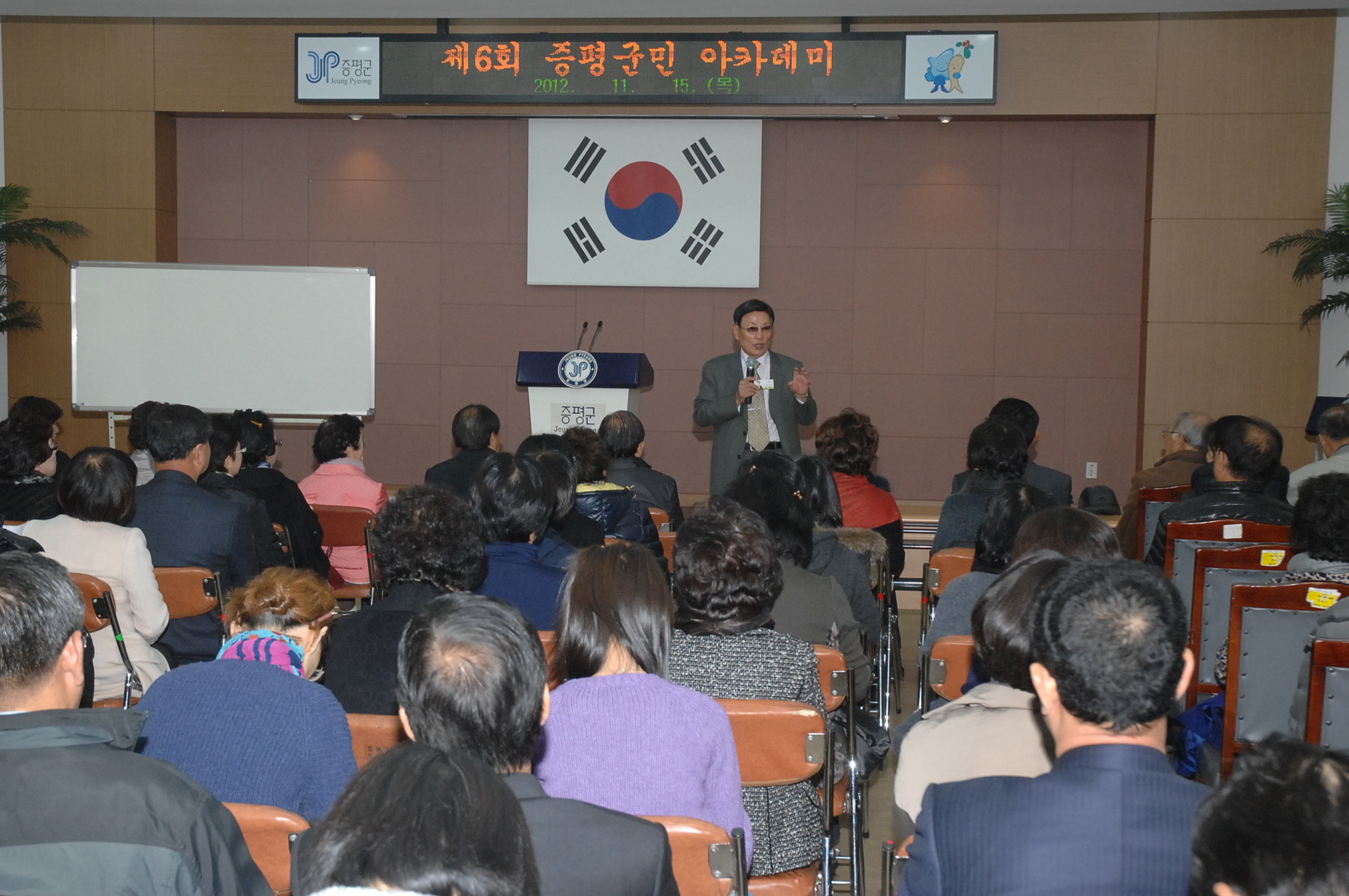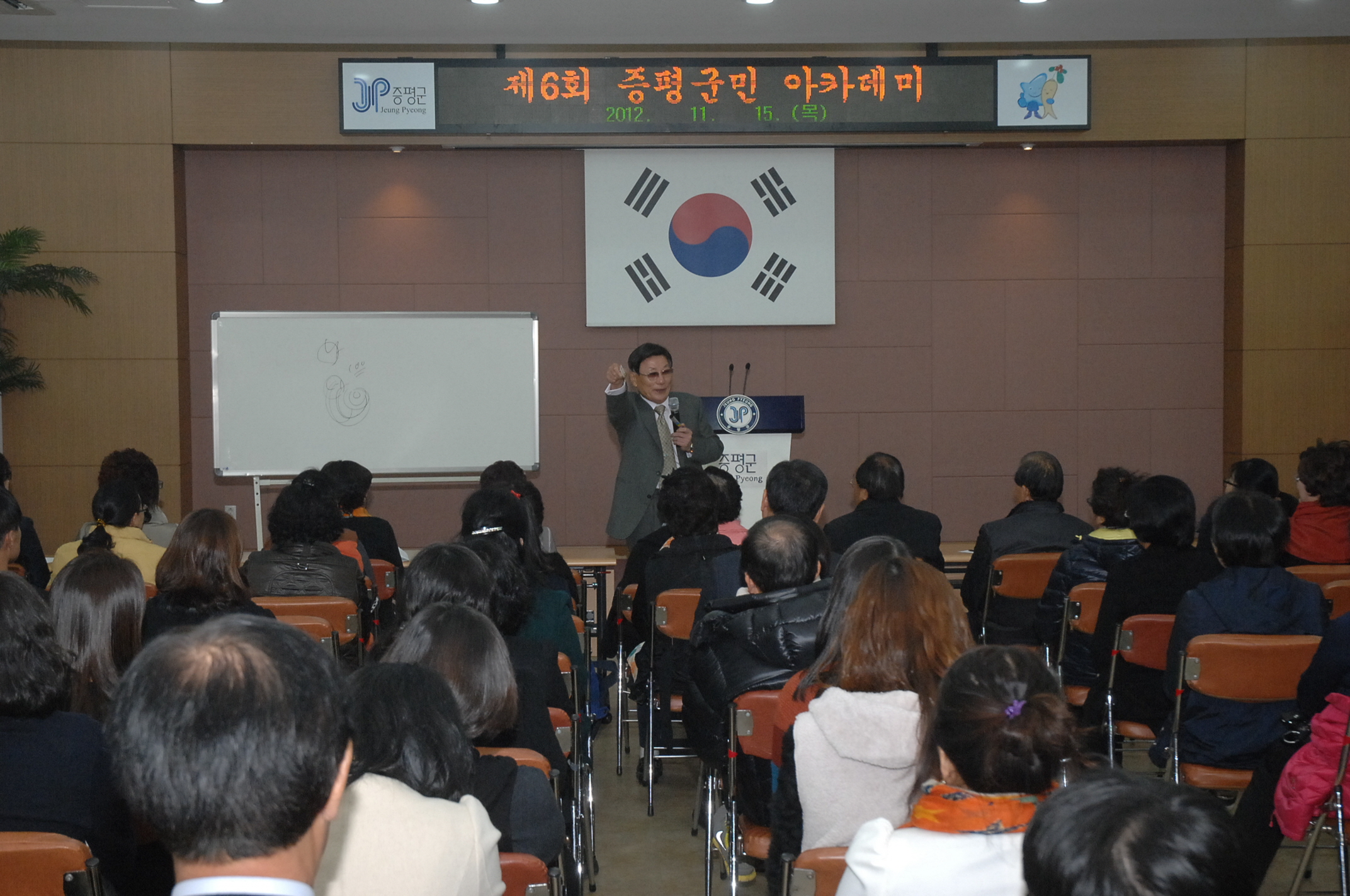 증평군은 15일 오후 3시 군청 대회의실에서 연세대학교 교육학과 이성호 교수를 초빙해 ‘자녀를 망치는 부모의 말 한마디’를 주제로 증평군민아카데미 여섯 번 째 강연을 실시했다.[11월7일 보도자료 참조]