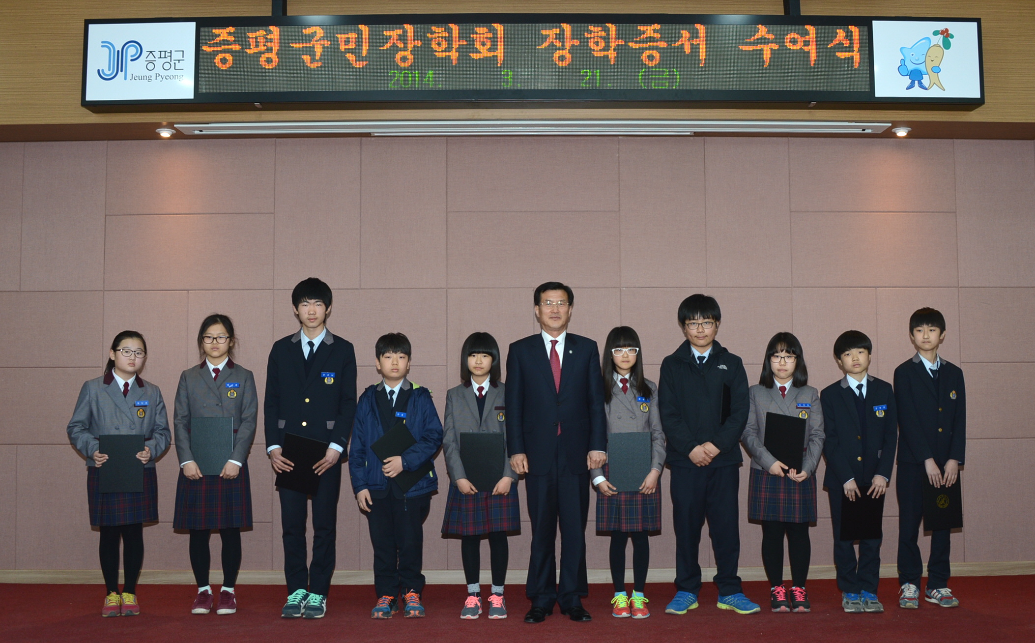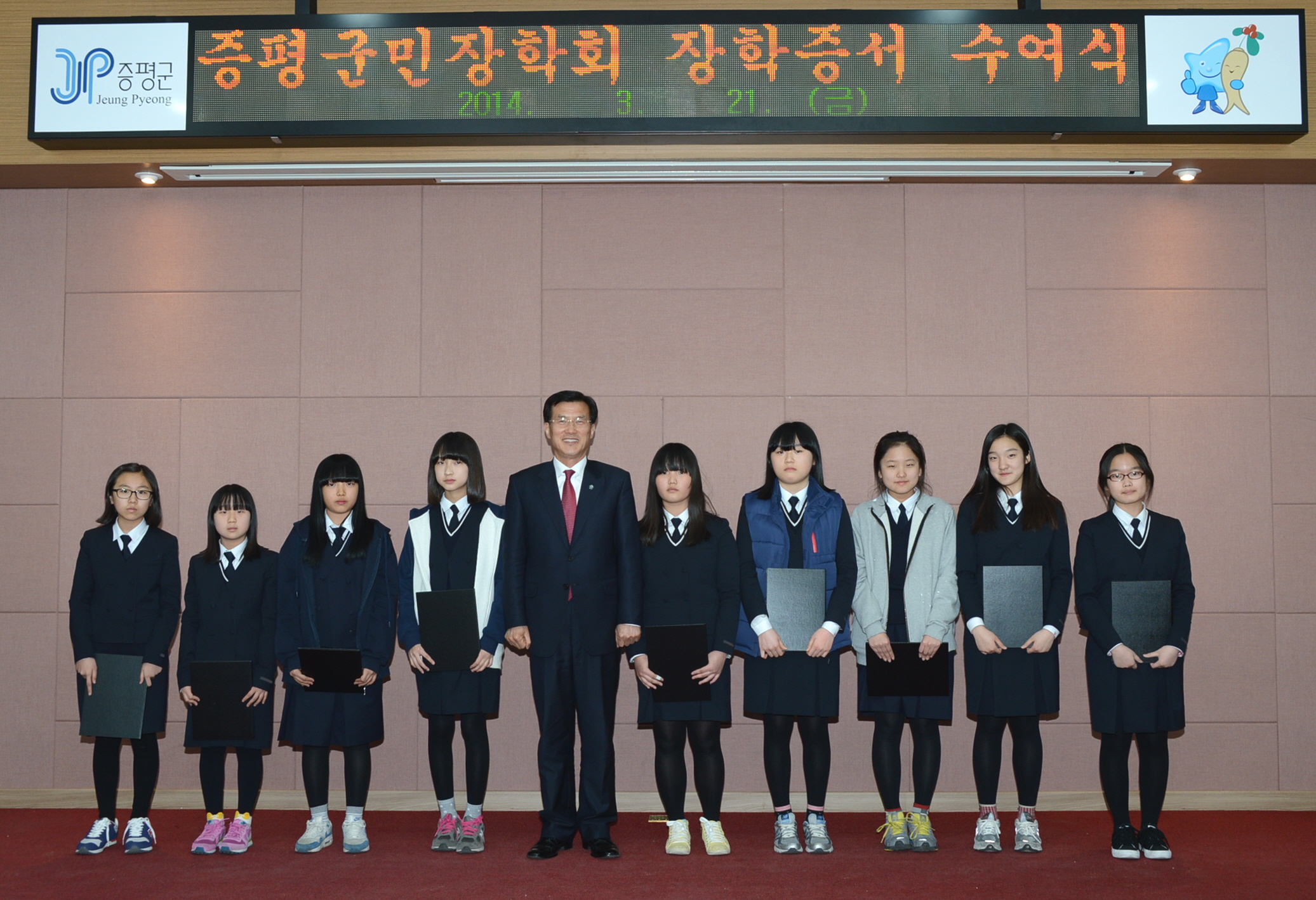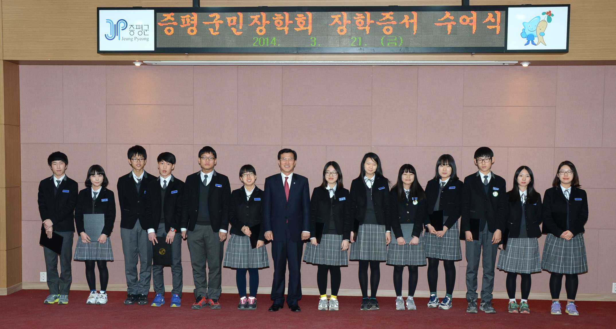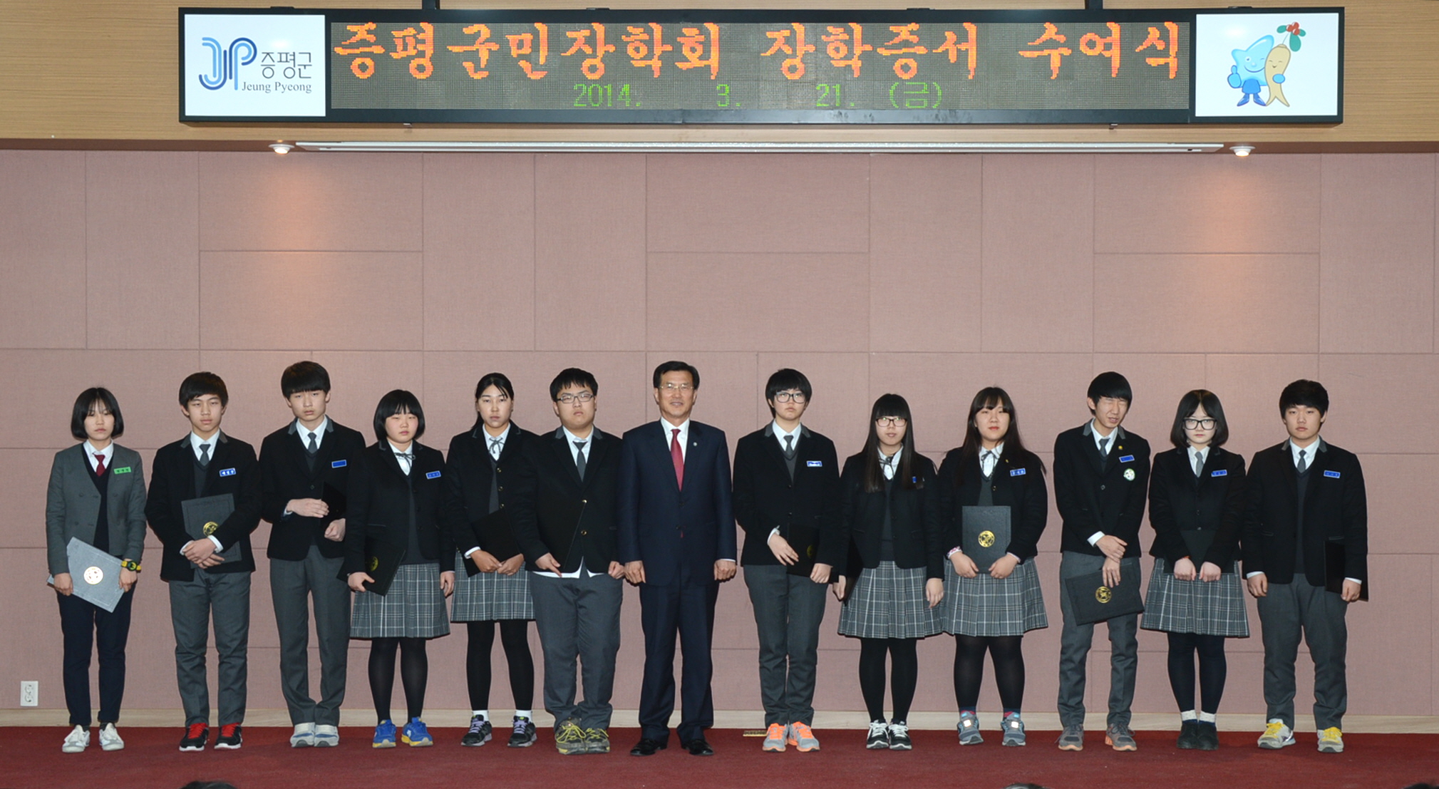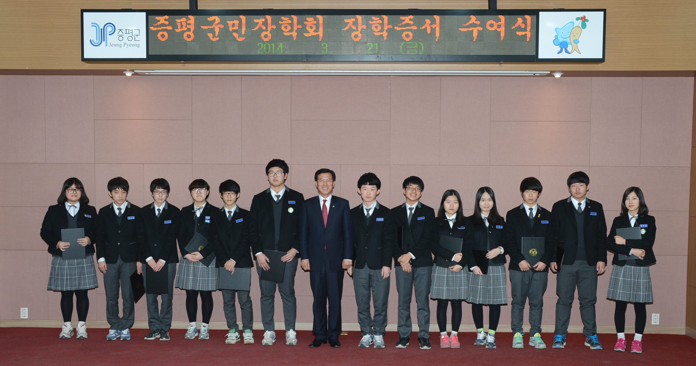 증평군민장학회 2014년 입학성적 우수 장학생 증서 수여