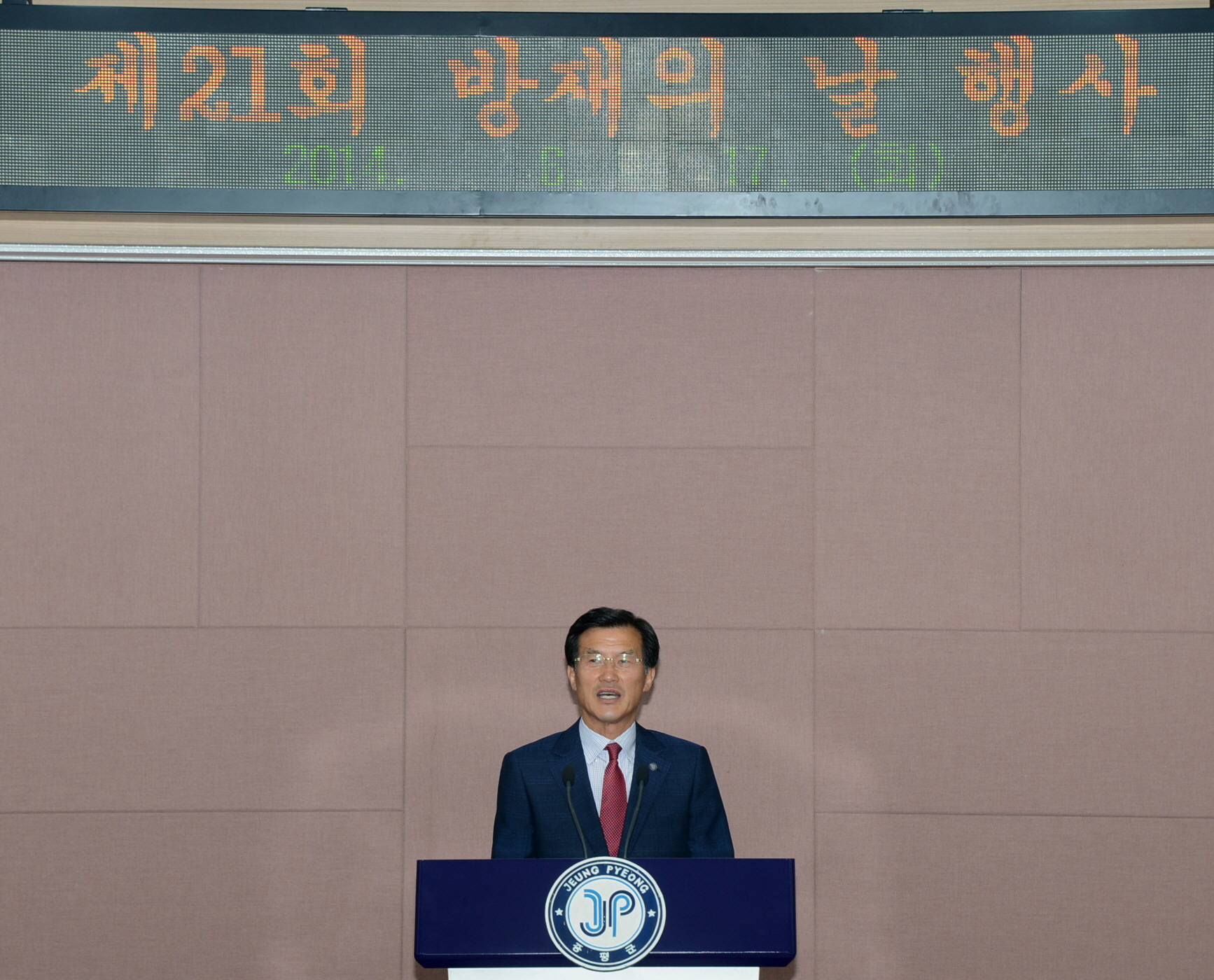 증평군은 17일 오전 10시 군청 2층 대회의실에서 제21회 방재의 날을 맞아 자율방재단, 유관기관 및 관계공무원 등 100여명이 참석한 가운데 증평군자율방재단 방재의 날 기념행사를 개최했다. [보도자료실 참조]