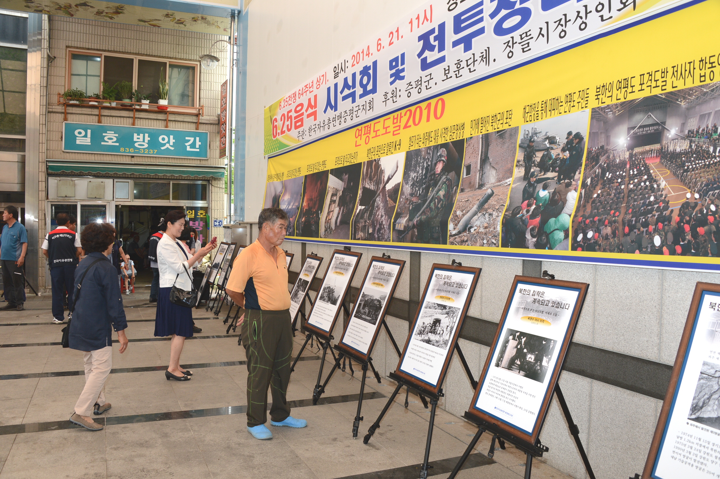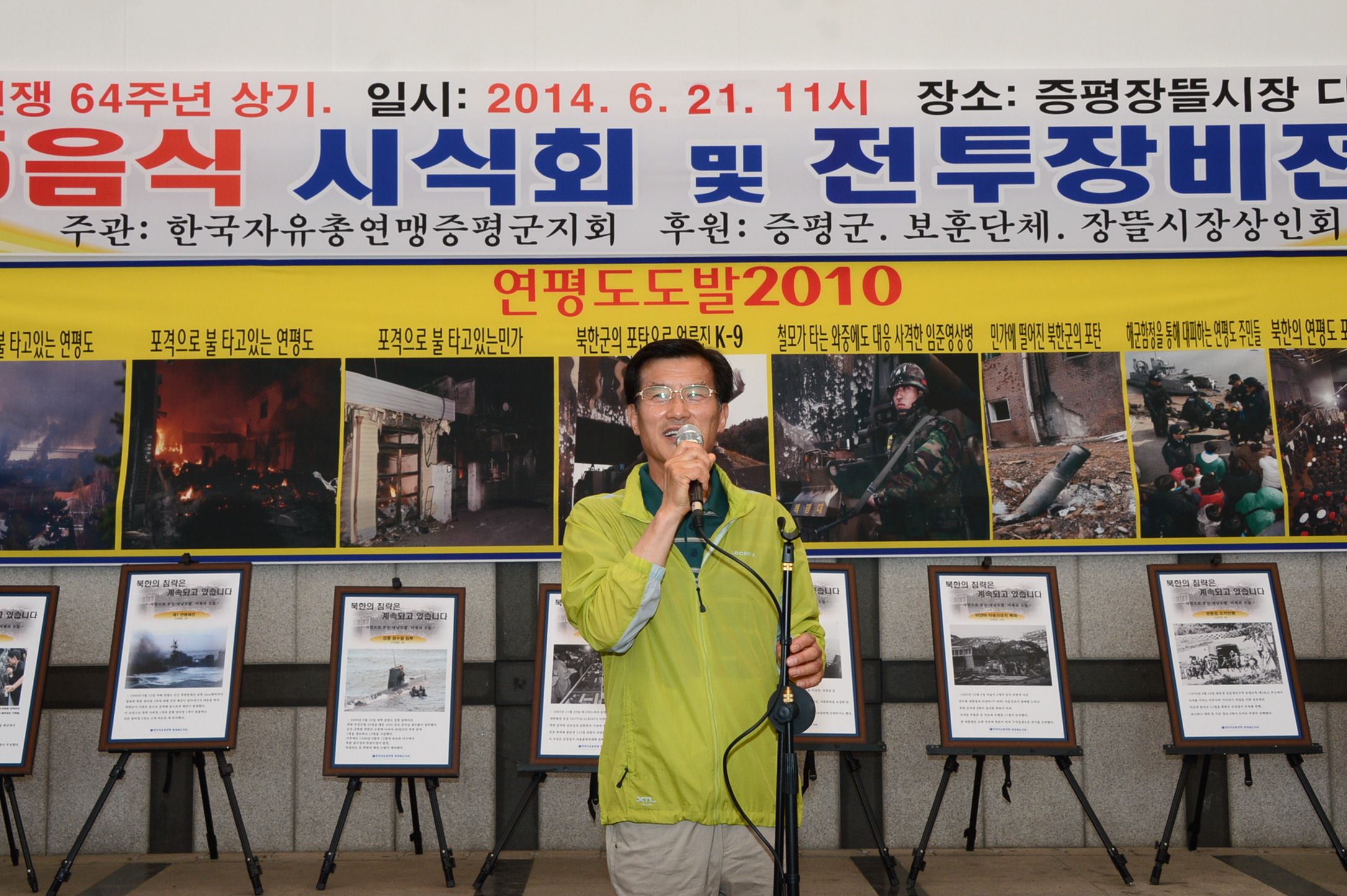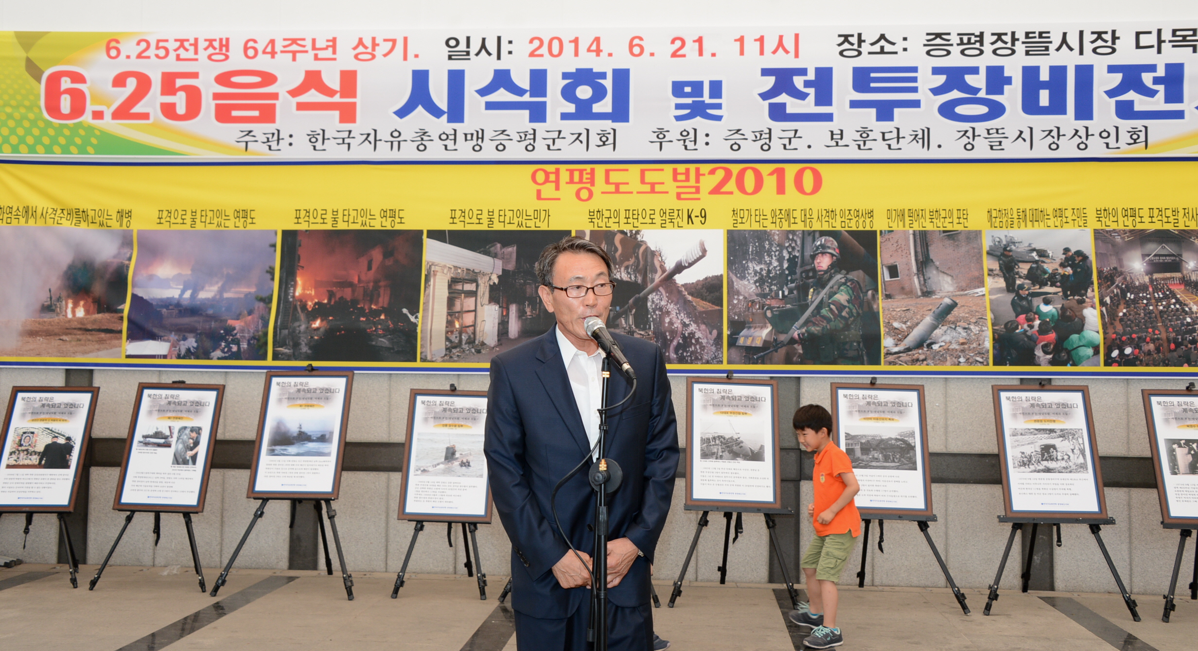 6․25 전쟁 64주년을 맞아 한국자유총연맹증평군지회(지회장 김덕중)에서는 21일 오전 11시부터 증평장뜰시장 다목적광장에서 6․25 음식체험 및 사진․전투장비 전시회를 개최했다. [보도자료실 참조]