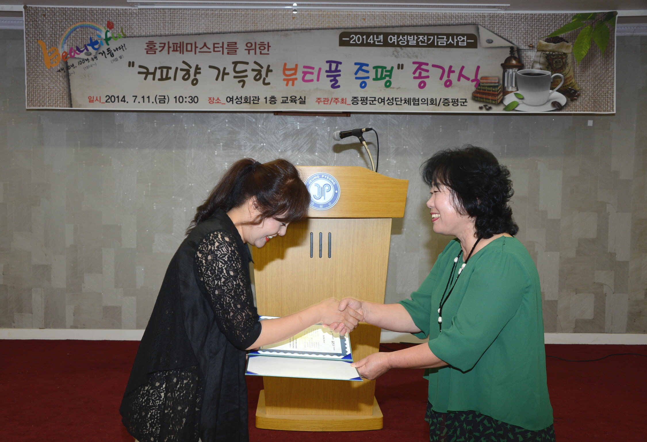 증평군은 11일 증평군 여성회관에서 2014년 성평등기금사업의 일환으로 진행된 홈카페마스터 프로그램 종강식을 가졌다. [보도자료실 참조]