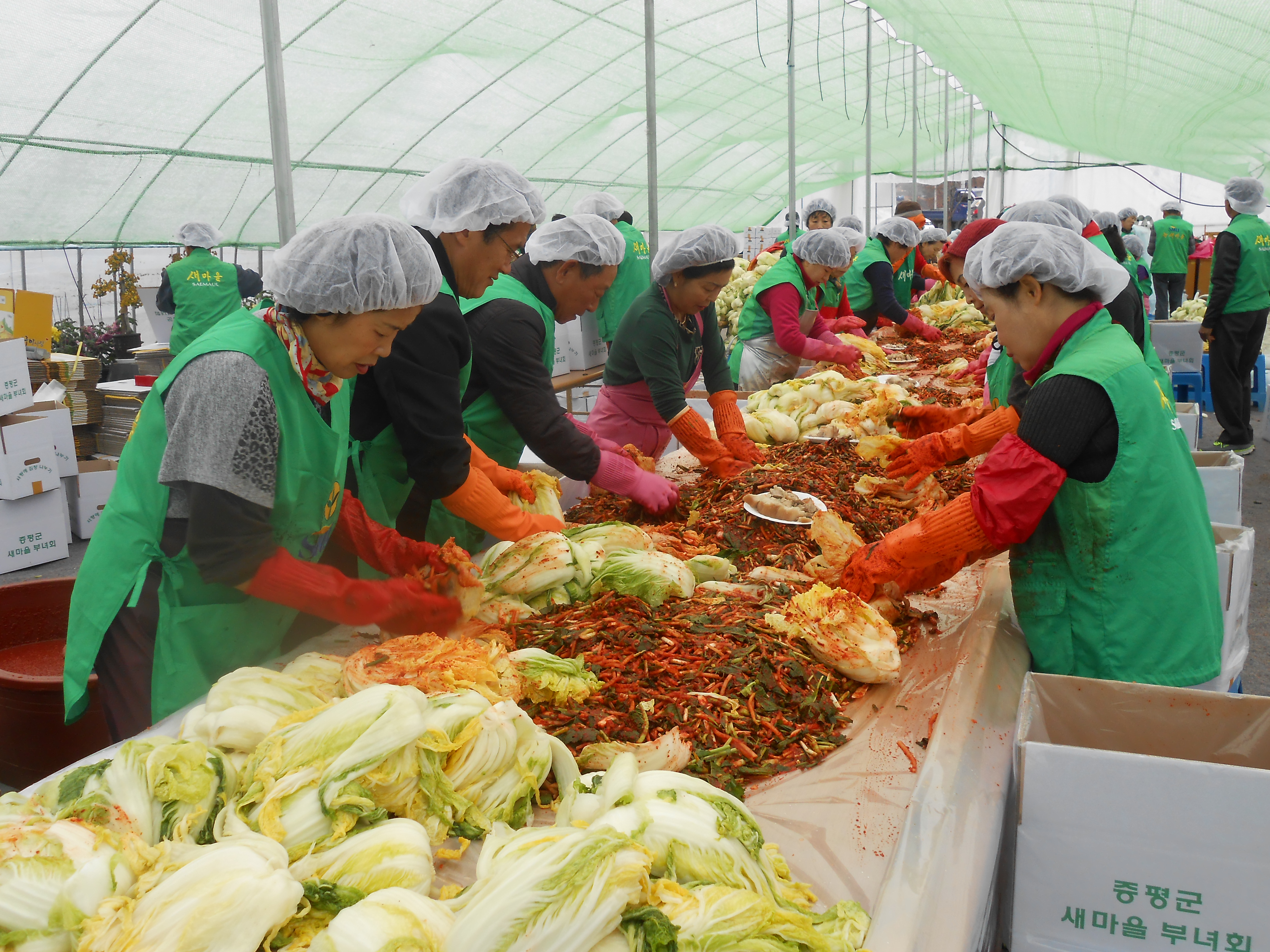 증평군새마을회부녀회(회장 김묘현)는 25일 증평읍 남하리 증평민속체험박물관 일원에서 어려운 이웃을 돕기 위한 김장 담그기 행사를 실시했다. [증평보도자료실 참조]