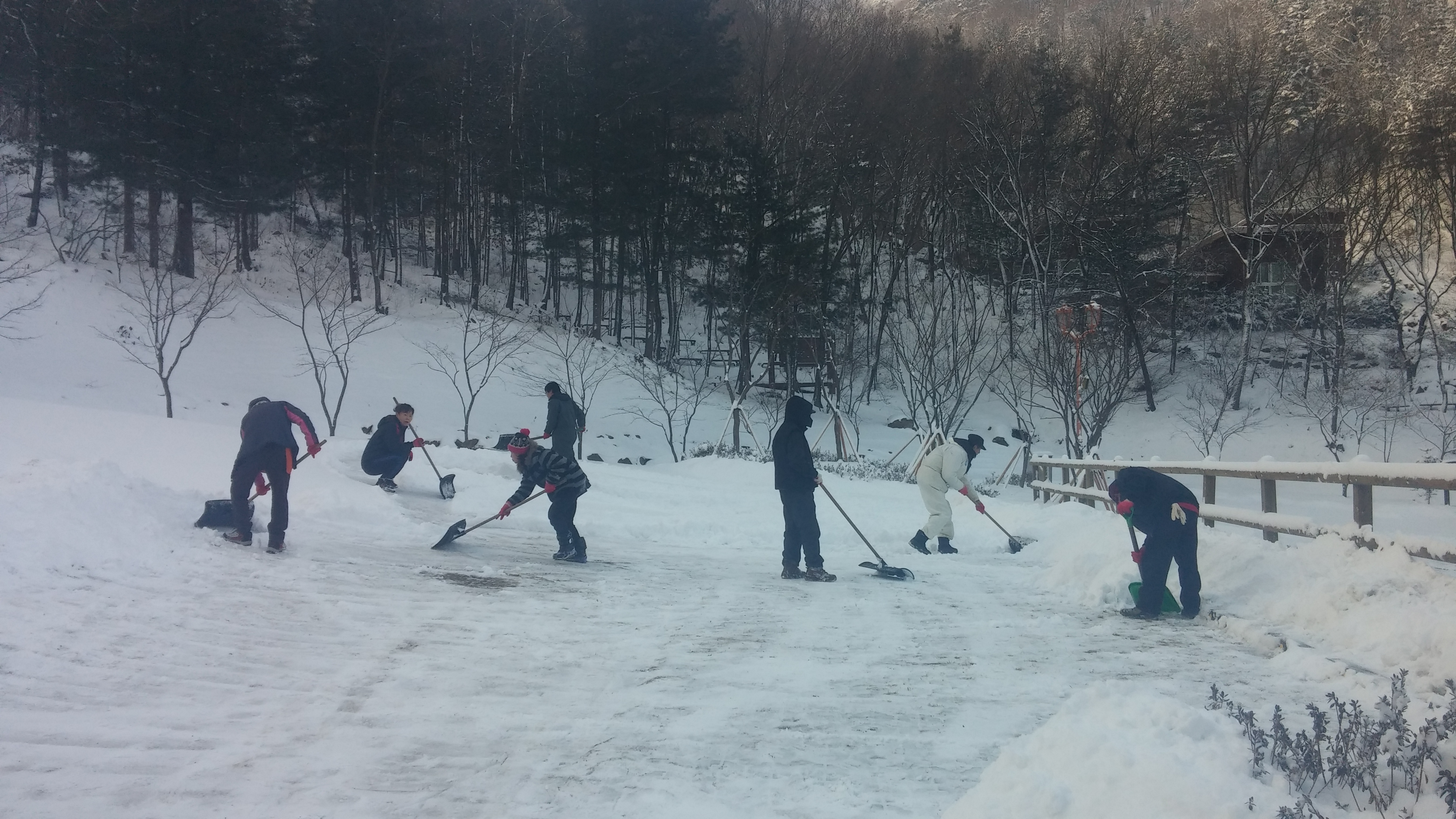 산림공원사업소는 올해들어 가장 추운 한파가 온 좌구산자연휴양림의 안전점검을 실시하는 한편 연말 손님맞이에 정신이 없다. [증평보도자료실 참조]