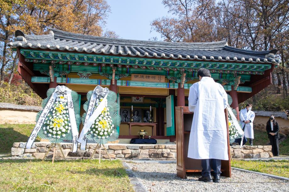 증평 출신 애국지사 연병환(1878~1926),연병호(1894~1963), 연미당(1908~1981) 선생에 대한 추모제가 16일 증평군 도안면 명덕정사에서 거행됐다.
