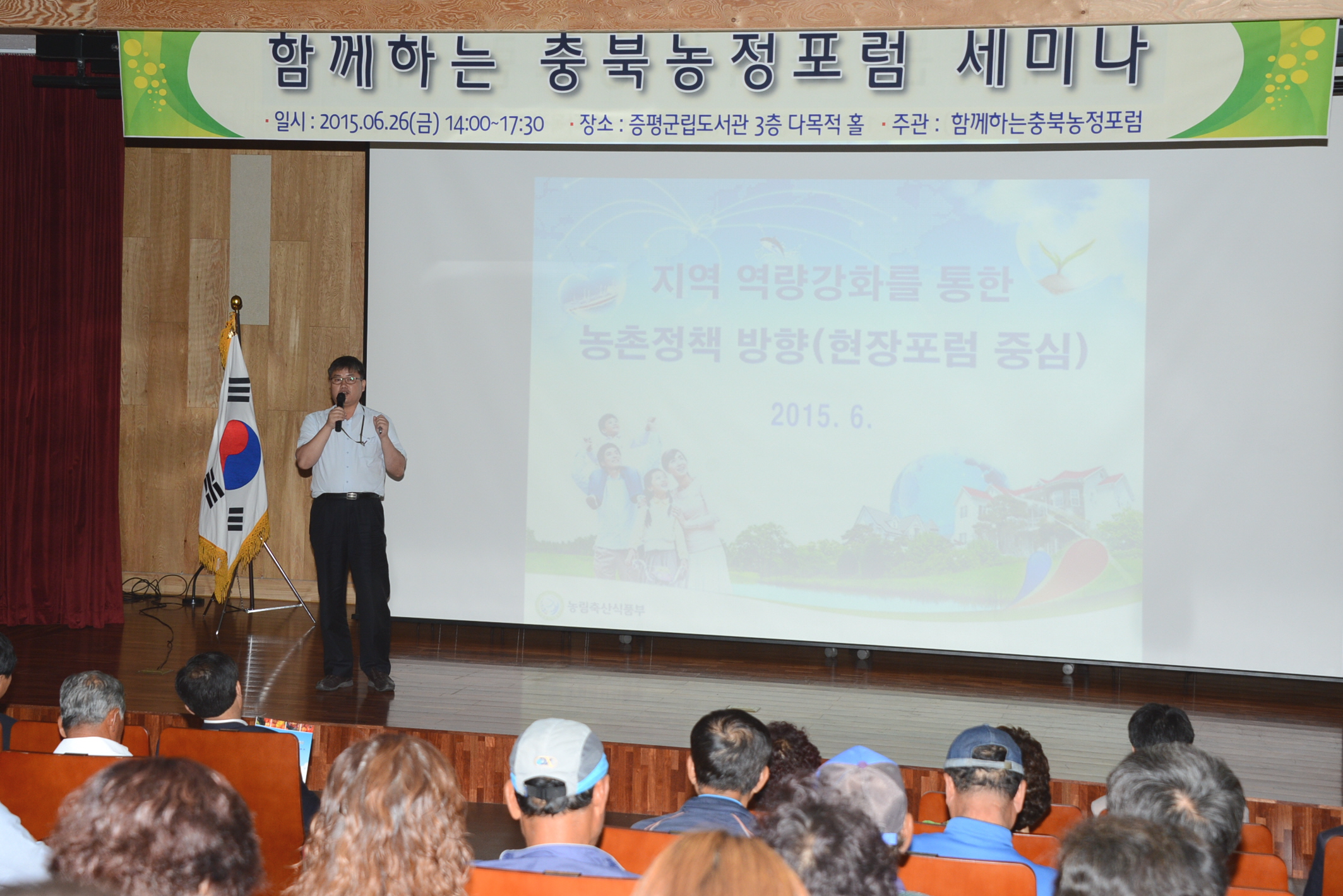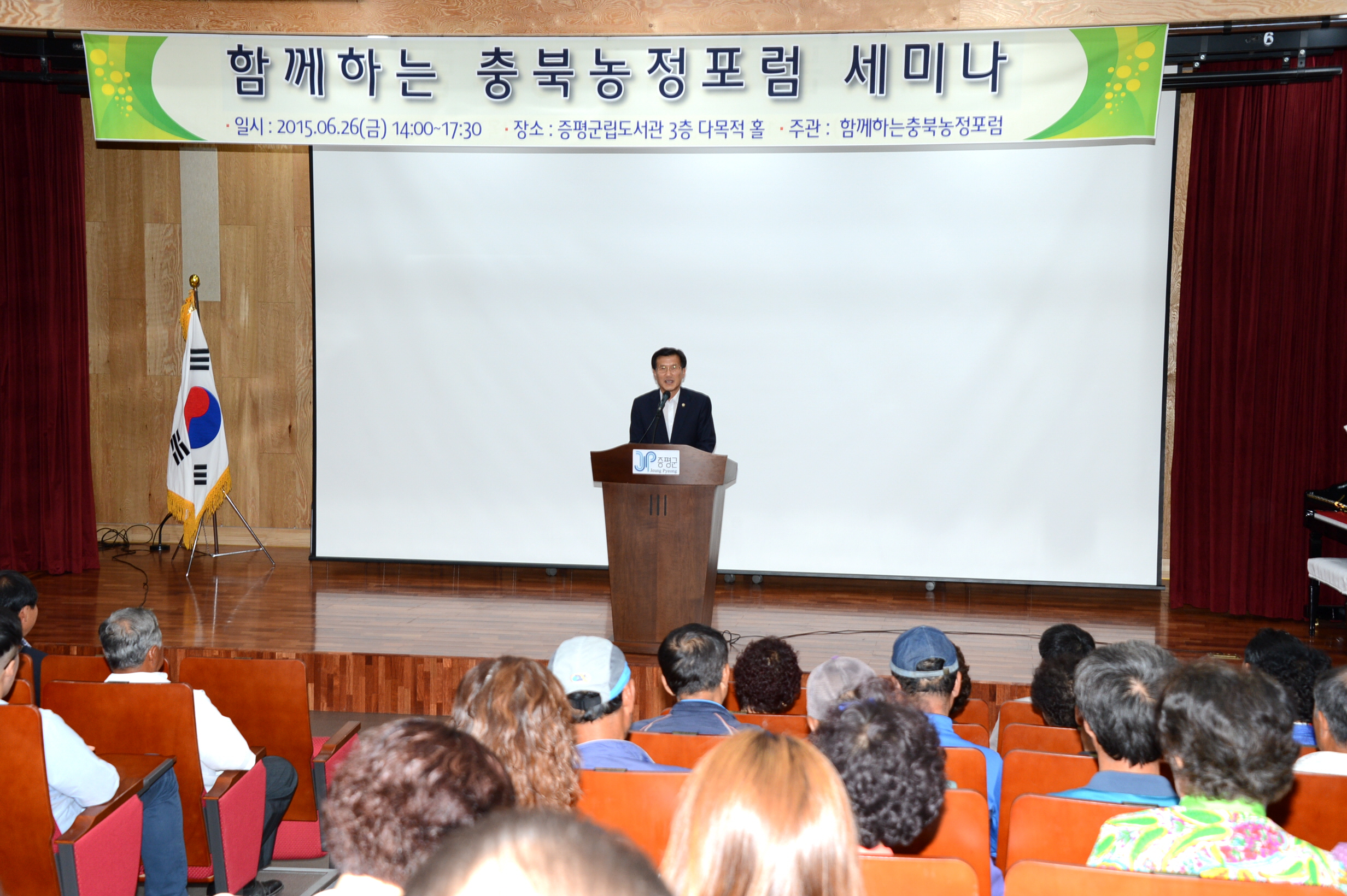 증평군은 26일 오후2시 증평군립도서관 다목적 홀에서 홍성열 증평군 비롯한 포럼회원, 중부4군 주민, 관련단체 등 100여명이 참석한 가운데 함께하는 충북농정포럼 세미나를 개최했다.(보도자료실 참조)