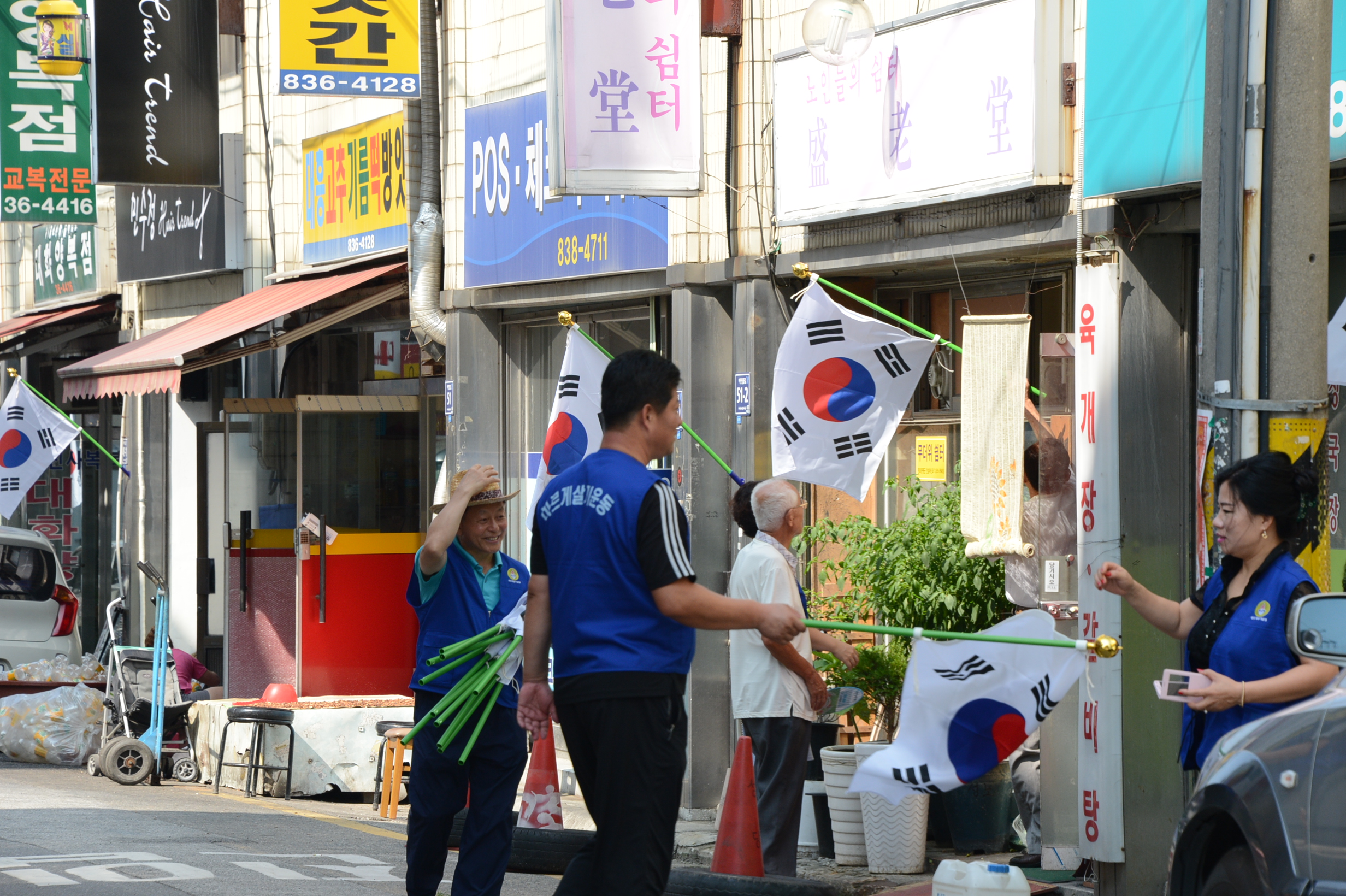 바르게살기운동 증평군협의회는 6일 오전 9시 30분 증평읍 아랫 장뜰로에서 연태희 회장을 비롯한 회원 30여명이 참석한 가운데 제70주년광복절 기념‘태극기 달기 거리’조성을 위해 100여 세대에 태극기를 게양했다. (보도자료실 참조)