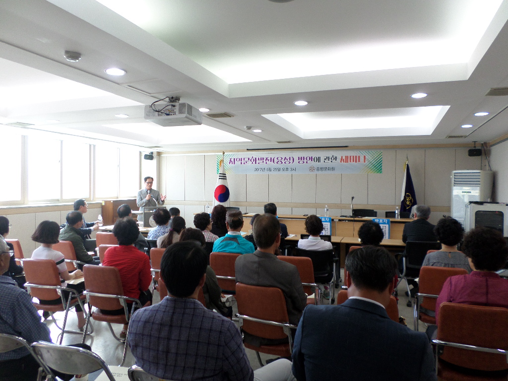 증평군은 지난 25일 증평문화센터에서 증평문화원(원장 김장응) 주관으로 열린 ‘지역문화 발전방안에 관한 세미나’에서 문화예술 분야를 통해 군민의 행복지수를 높이는 방안이 연구 발표됐다.