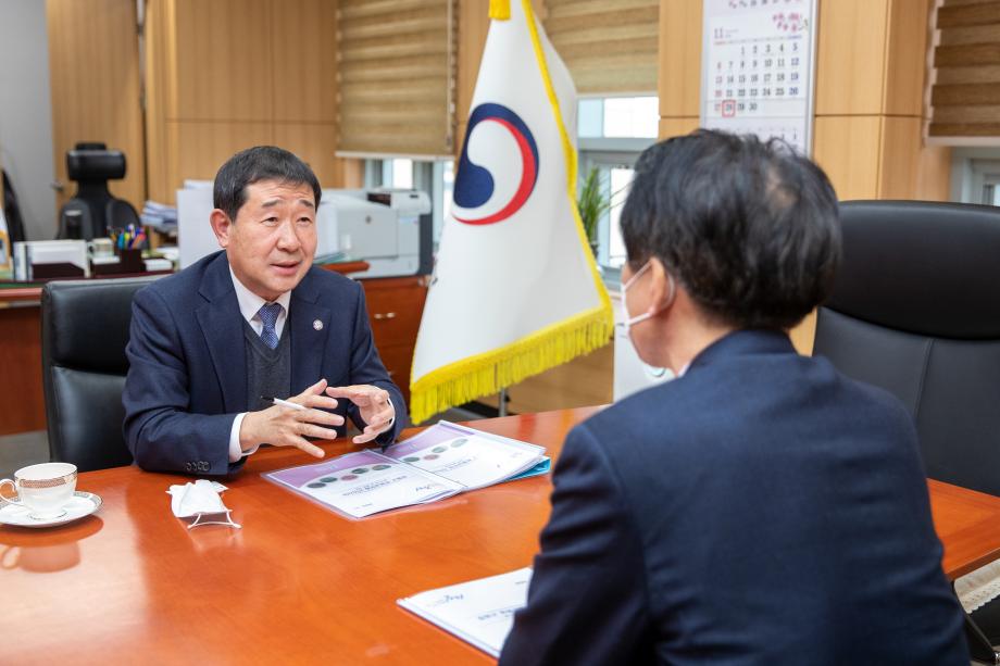 이재영 증평군수가 28일 행정안전부를 방문해 재난수요 특별교부세 신청 사업을 설명하고 특별교부세 지원을 요청했다.
