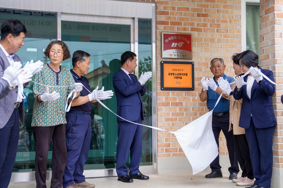 충북 증평군이 초고령사회에 대응해 노인의 삶의 질을 높이기 위한 돌봄 정책을 강화하는 가운데, 13일 ‘증평형 노인복지모델’의 시범마을 현판식이 증평읍 용강1리에서 열렸다.