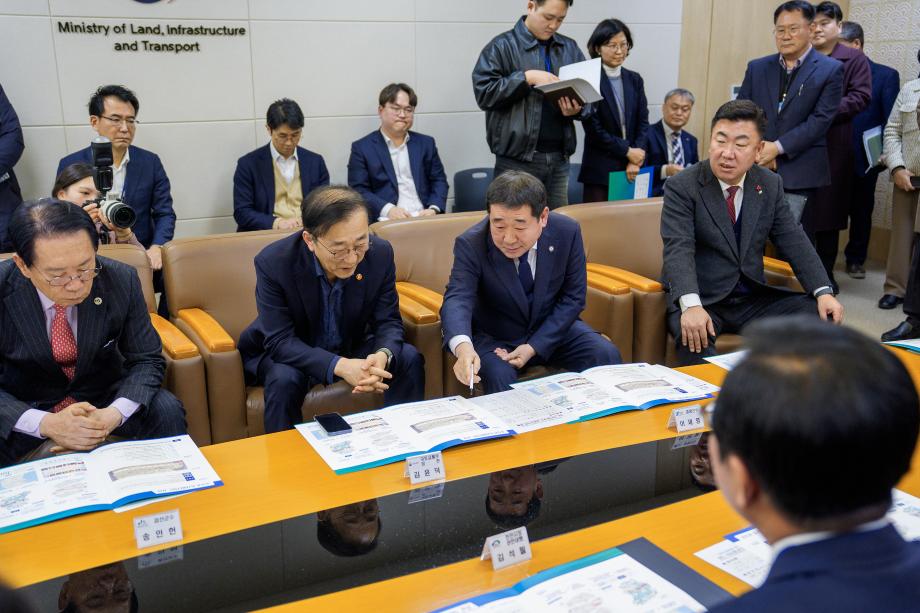 이재영 충북 증평군수는 19일 중부권 동서횡단철도 시․군 협력체* 시장․군수들과 함께 김윤덕 국토교통부장관을 만나 중부권 동서횡단철도 건설사업 국가계획 반영을 위한 공동 건의문을 제출했다.