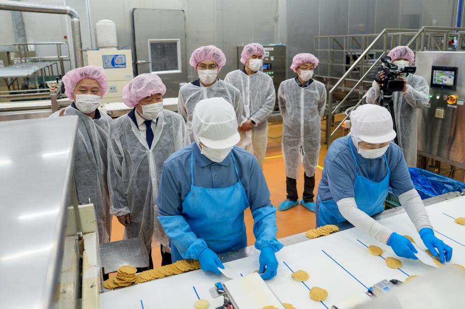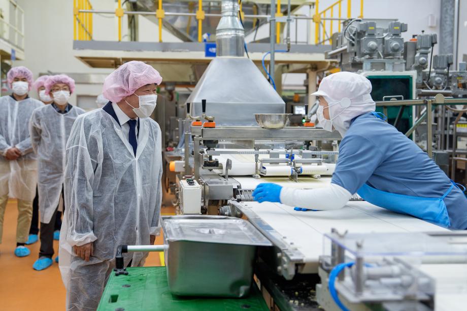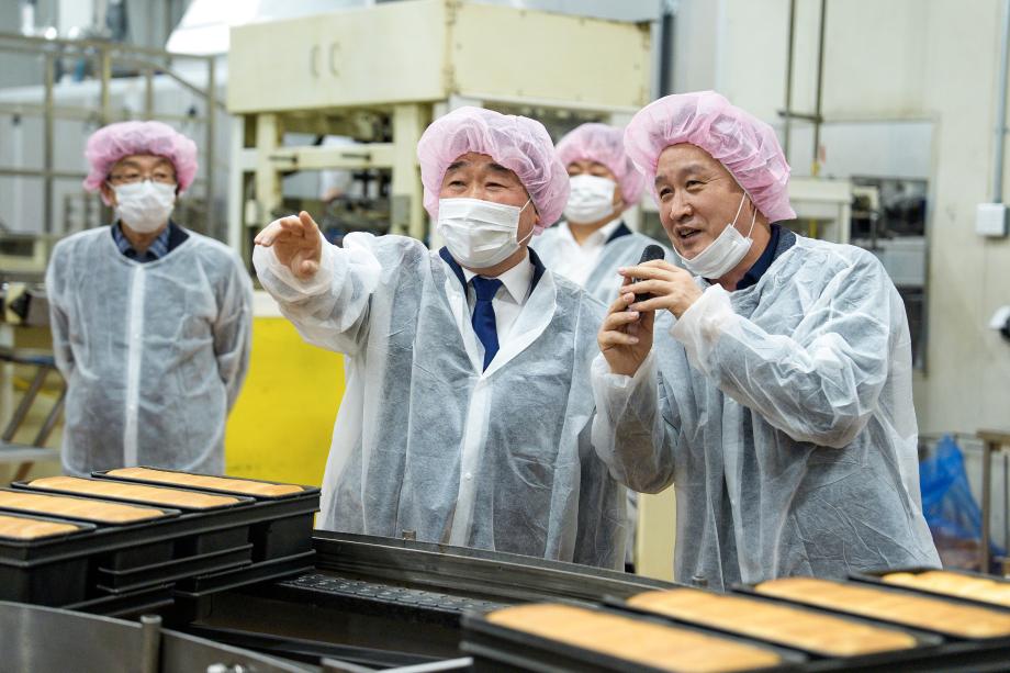 충북 증평군은 12일 이재영 군수가 도안테크노밸리에 위치한 ㈜신라명과(대표 박창훈, 홍수현) 증평사업장을 방문했다고 밝혔다.