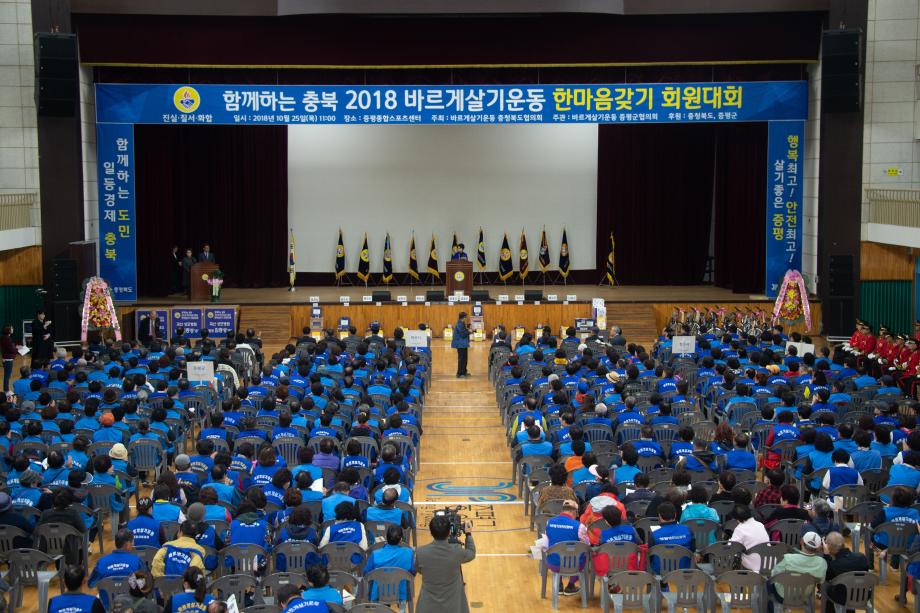 함께하는 충북 2018 바르게살기운동 한마음 갖기 회원대회가 25일 증평읍 송산리 증평종합스포츠센터에서 개최됐다.