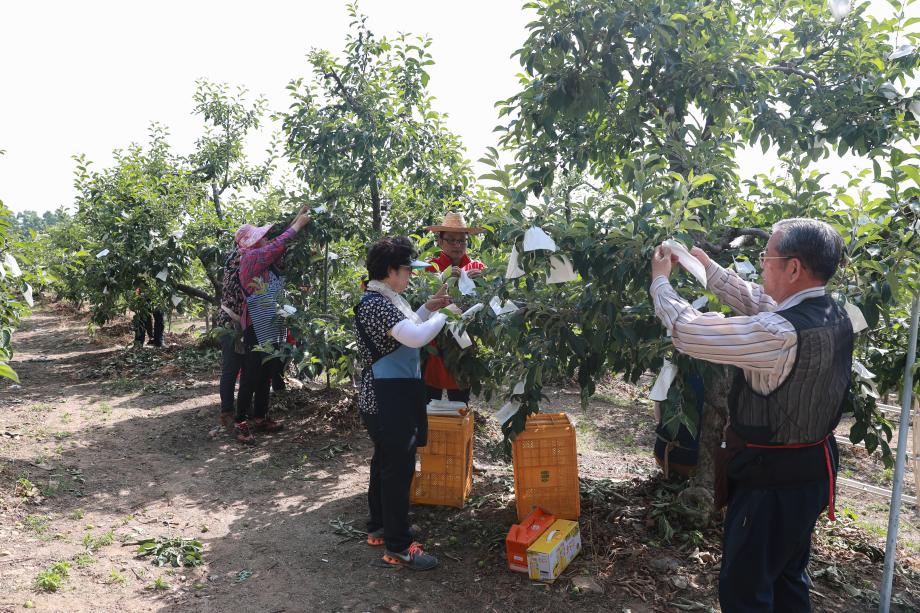 증평읍주민자치위원회(위원장 연태희)가 과수 적과시기를 맞아 부족한 일손을 돕기 위해 4일 증평읍 남하리 일원의 복숭아 재배 농가를 찾았다.