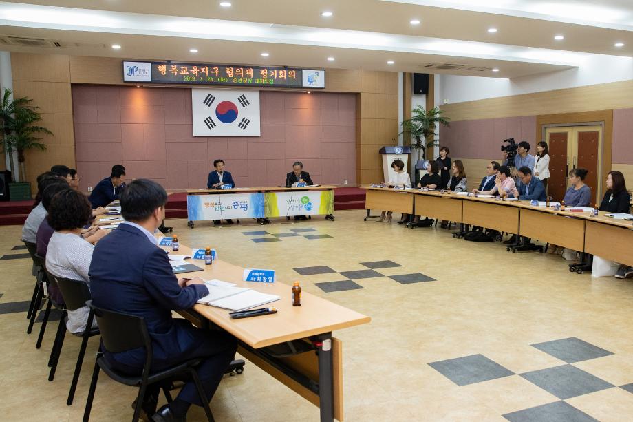 증평행복교육지구 협의체(공동 위원장 홍성열 증평군수, 장재영 괴산증평교육청교육장)는 23일 군청 대회의실에서 2019년 정기회의를 열었다.