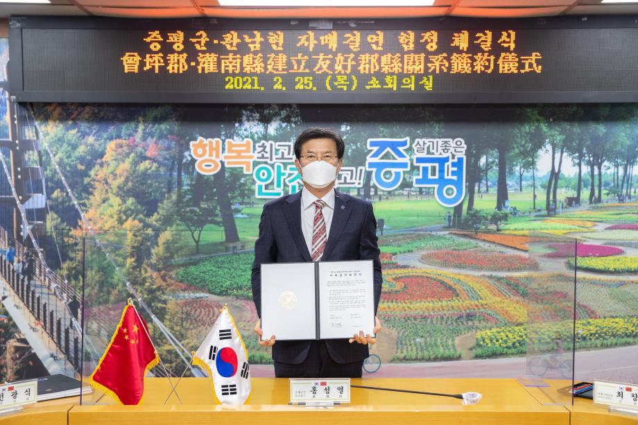 충북 증평군이 중국 강소성 관남현과의 관계를 우호교류에서 자매결연으로 격상했다.