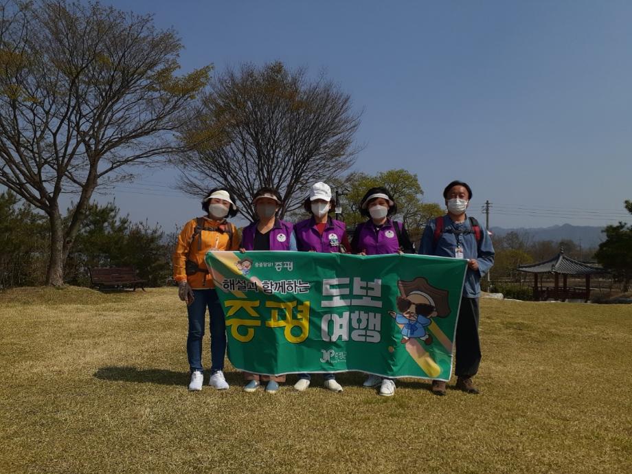 증평군 여성친화도시 주민참여단이 해설과 함께하는 증평 도보여행에 참여해 주요관광지 모니터링을 실시한다.