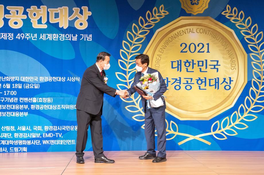 홍성열 군수가 18일 서울 백범 김구 기념관에서 열린「대한민국 환경공헌대상 시상식」에서 환경공헌 대상을 수상했다.