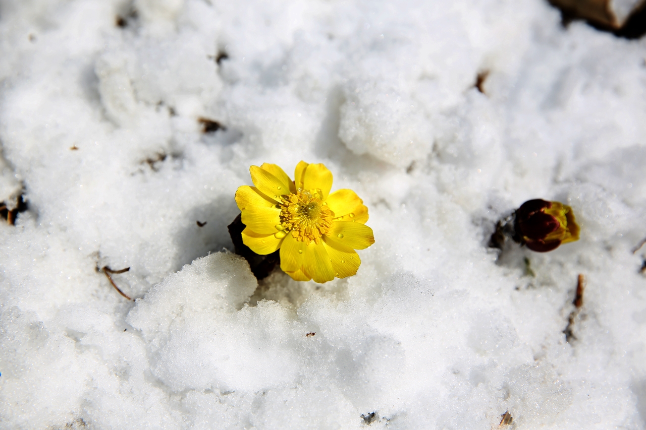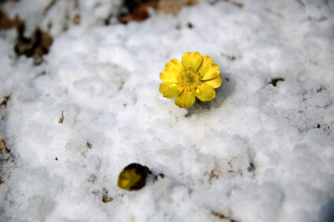 충북 증평군 좌구산자연휴양림에 봄의 전령사인 복수초가 긴 겨울 한파를 뚫고 개화해 휴양림을 찾는 관광객과 등산객들에게 봄을 알리고 있다. [증평보도자료실 참조]