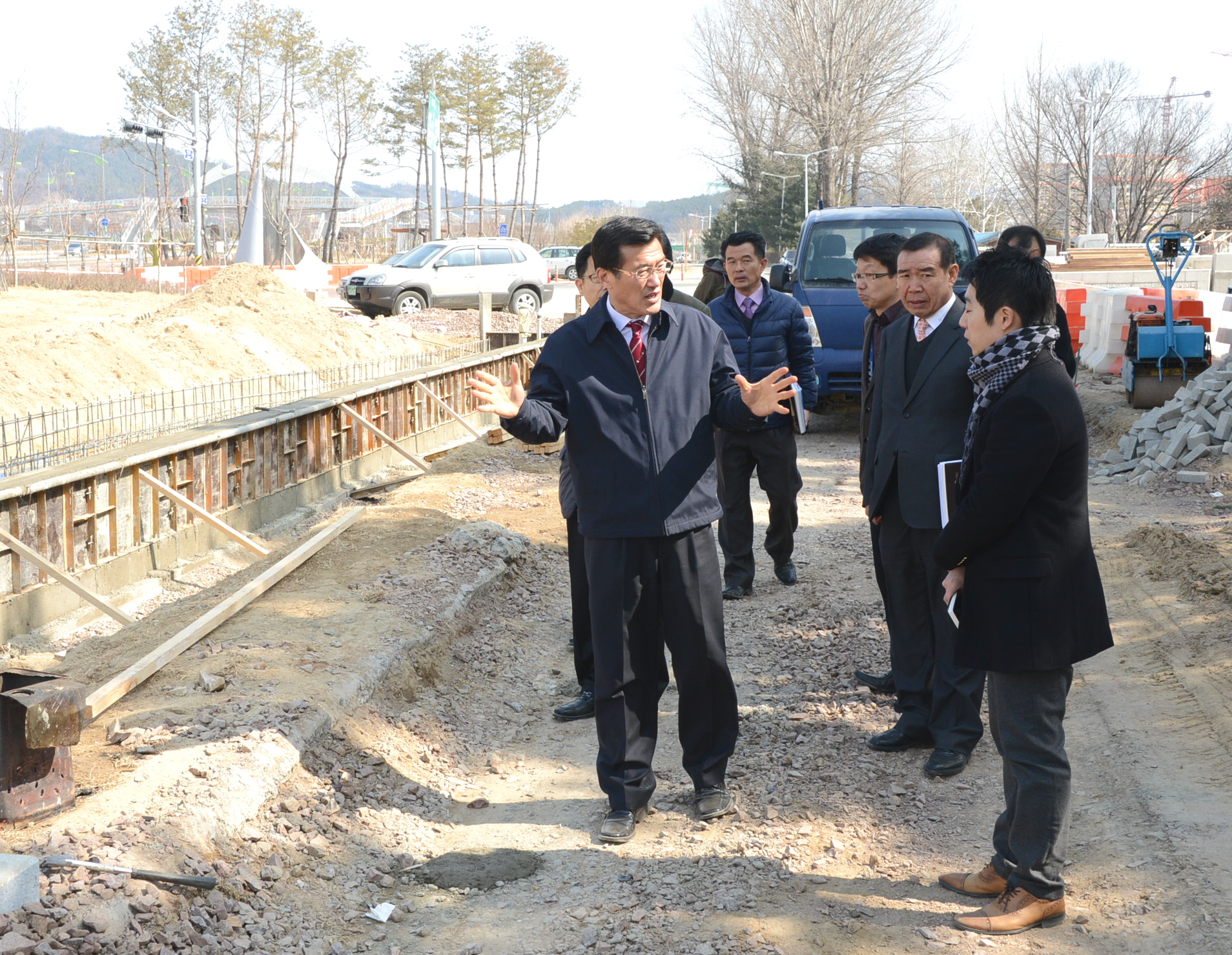 홍성열 증평군수는 7일 동절기 공사 중지 해제에 따라 보강천 녹색길 조성사업, 증평대교 교량확장공사와 금년도 추진예정인 녹색나눔숲 조성사업 대상지 등에 대해 현장점검을 실시했다. [보도자료 참조]