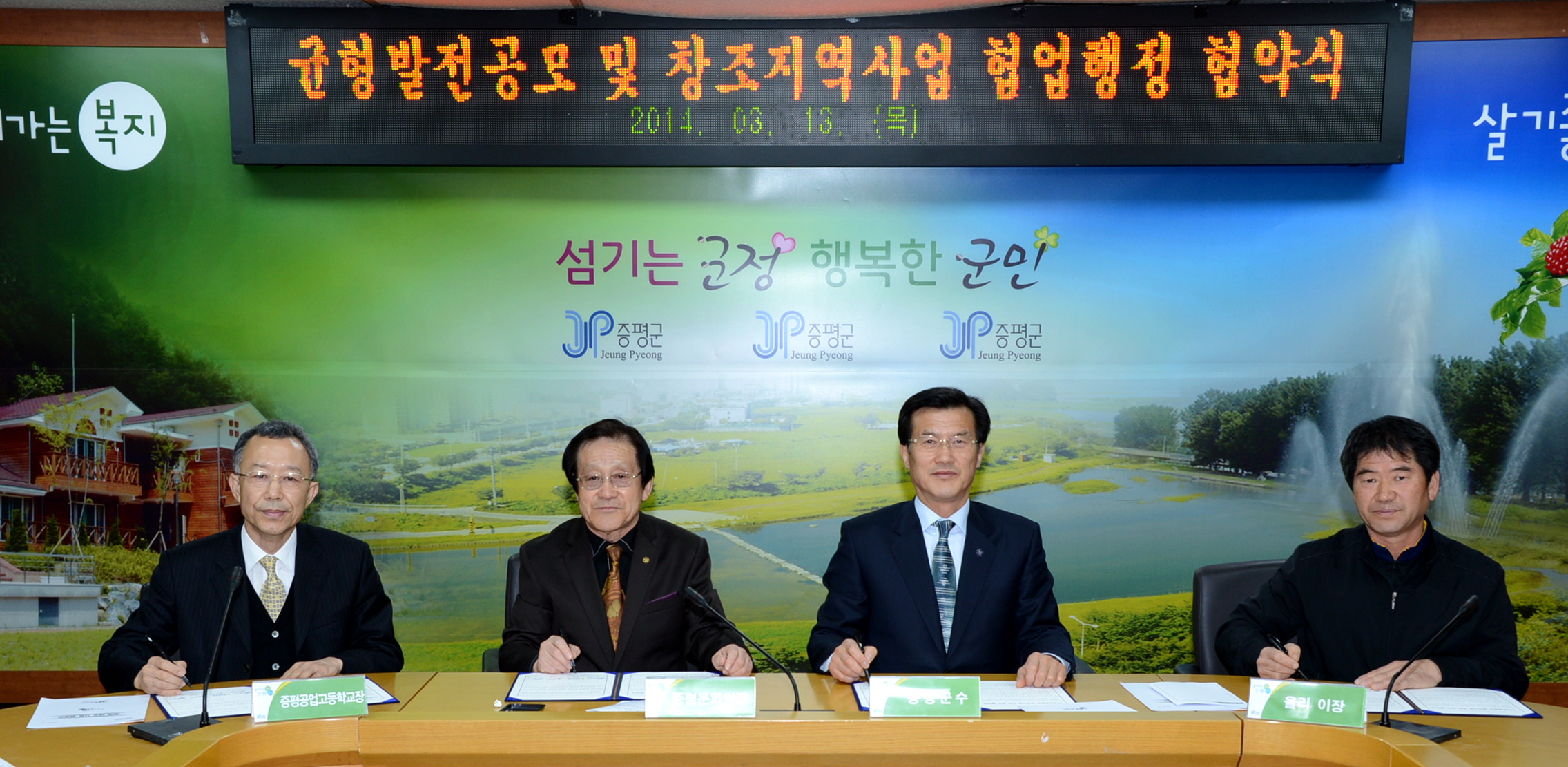 증평군, 균형발전 공모 및 창조지역 사업 협업행정 협약 체결