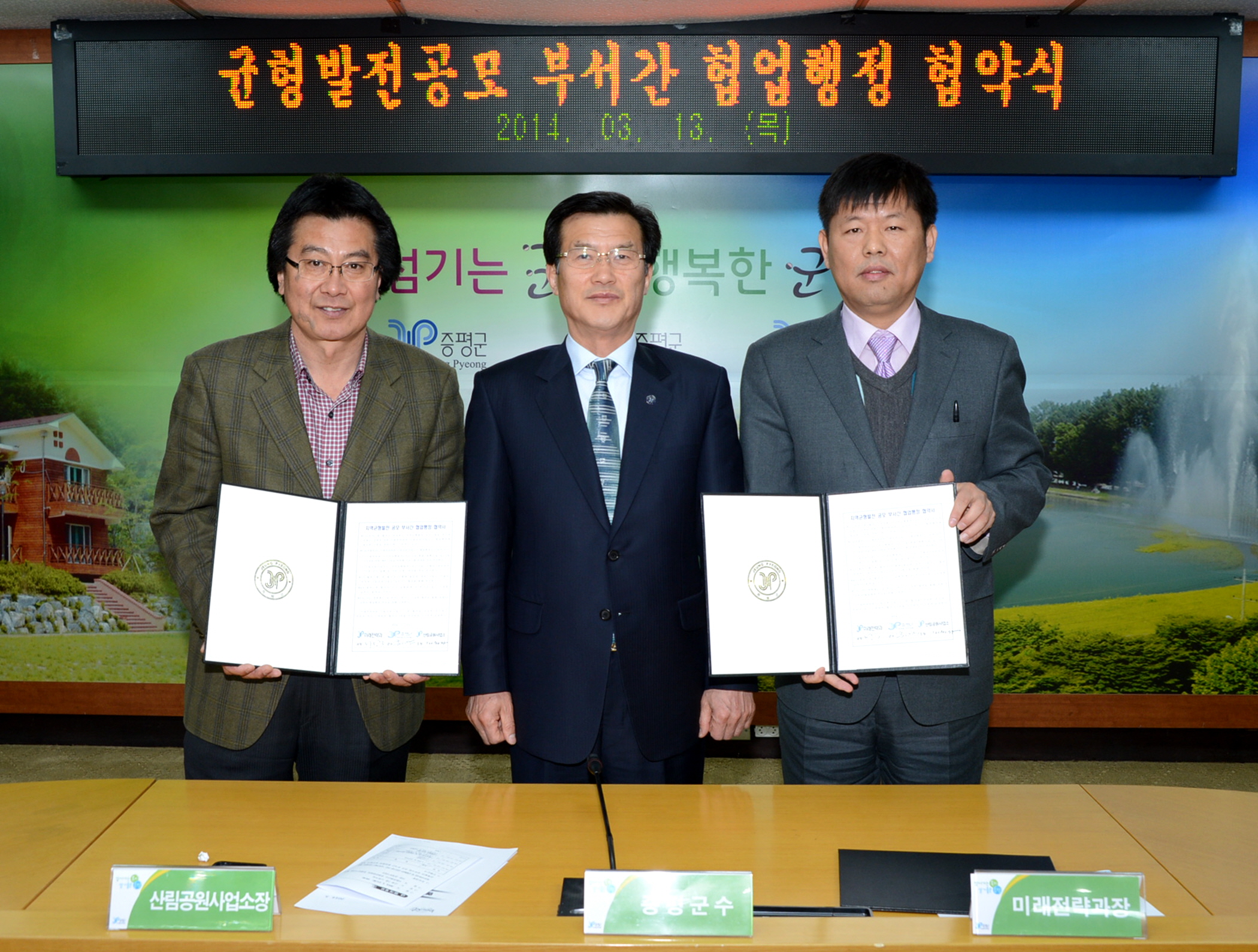 증평군은 13일 군청 소회의실에서 창조지역사업 및 지역균형발전 공모사업의 성공적 추진을 위한 기관·단체간 업무협약과 추진 부서간 협업행정 협약을 체결했다. [보도자료실 참조]