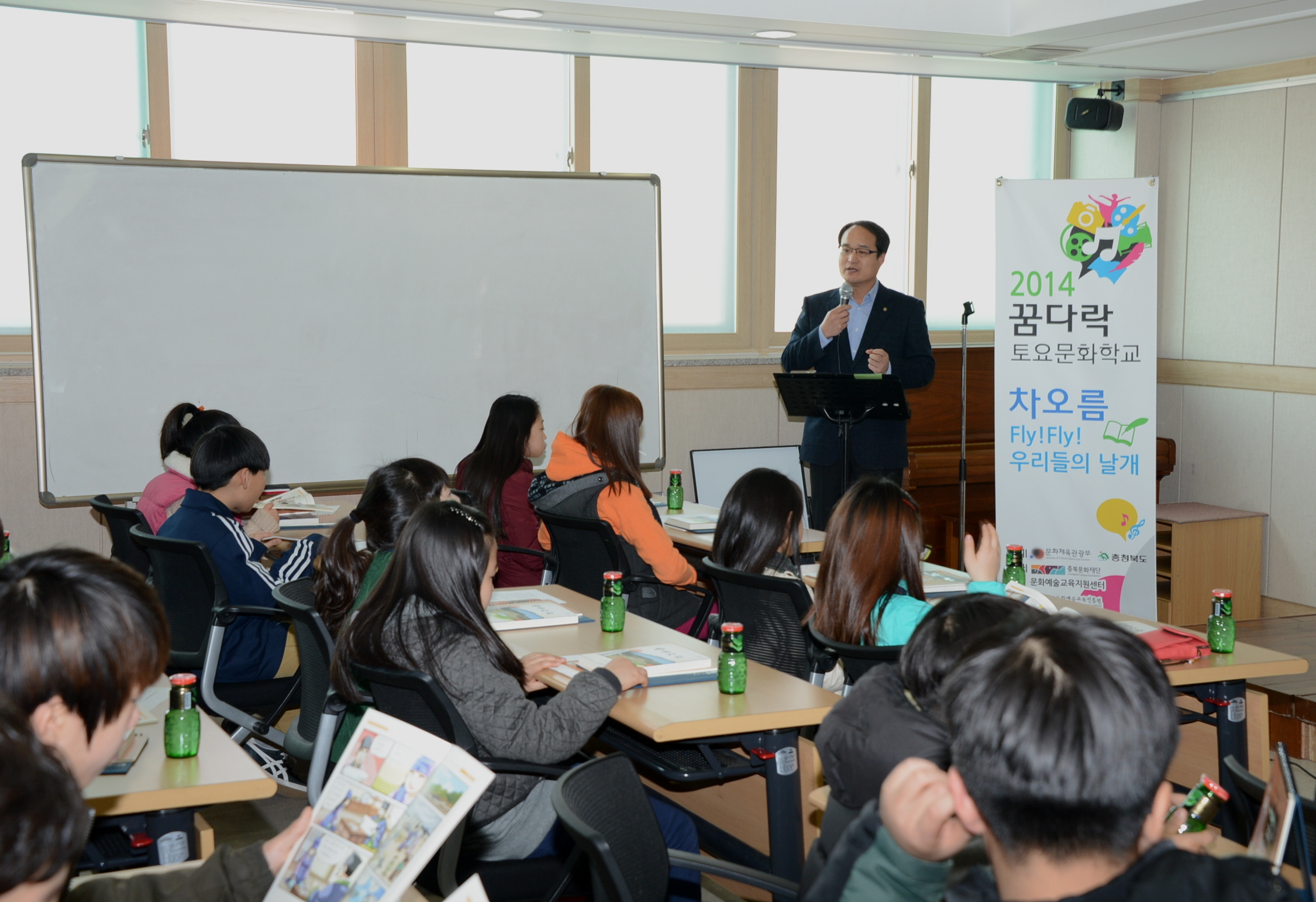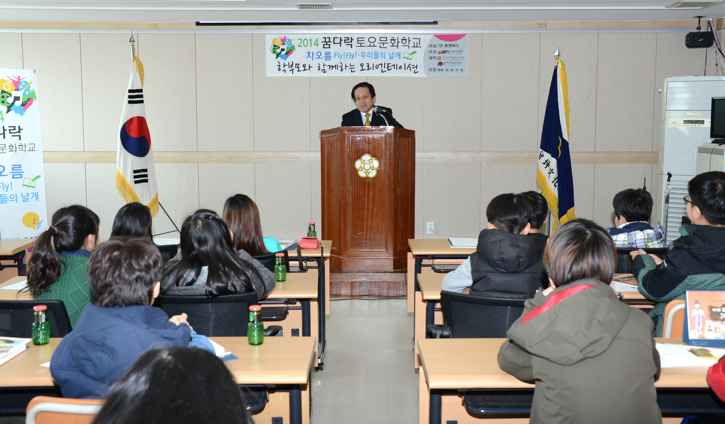 증평 문화의 집(원장 최건성)은 15일 오전10시 관내 초등학교 4~6학년 20명과 학부모 등 50여명이 참석한 가운데 ‘2014 꿈다락 토요문화학교’ 개강식을 가졌다.[보도자료실 참조]