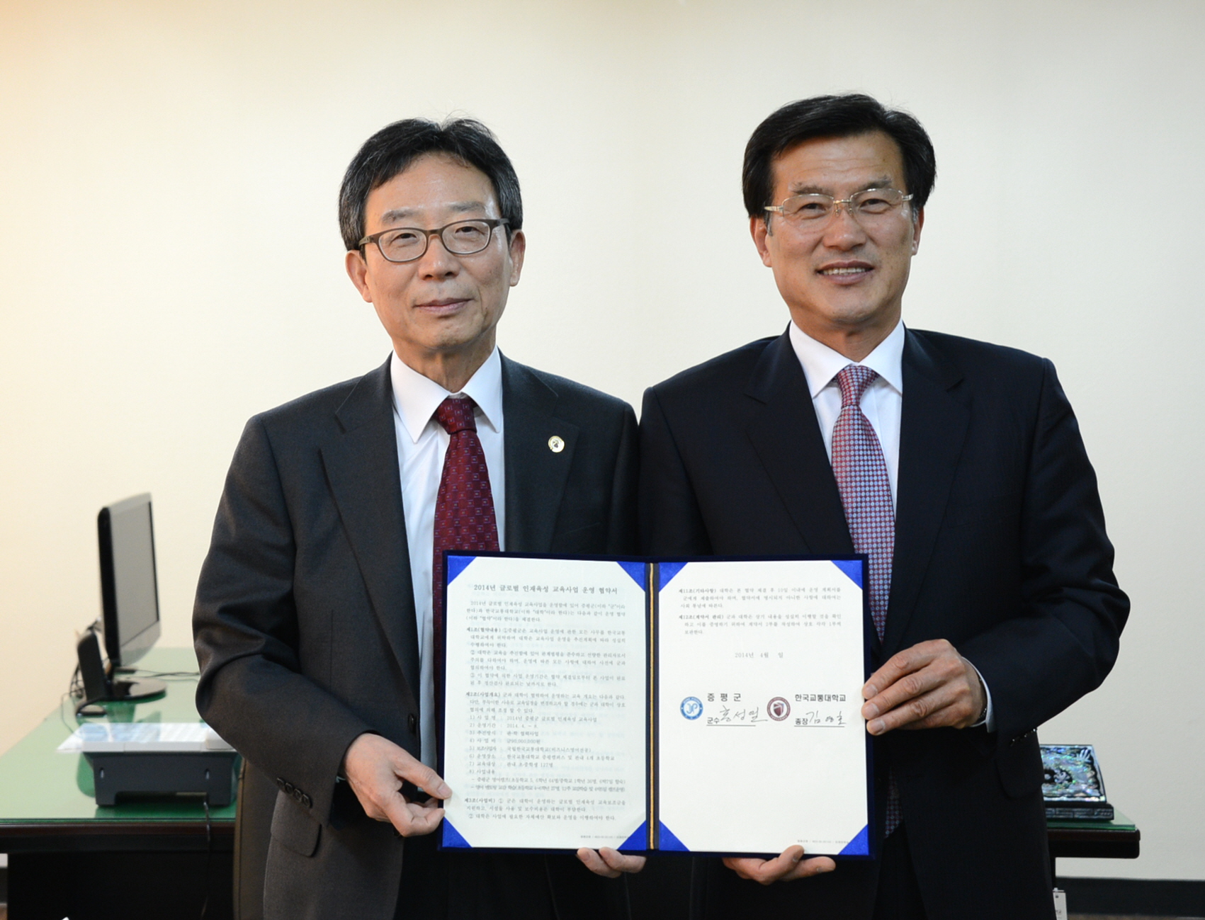 증평군(군수 홍성열)은 11일 한국교통대학교 증평캠퍼스에서 지역의 열악한 교육환경을 보완하고 고품질의 영어교육 기회를 제공하기 위해 한국교통대학교(총장 김영호)와 영어캠프 및 초등영어 멘토링 등 글로벌 인재육성사업 운영을 위한 협약을 체결했다. [보도자료실 참조]