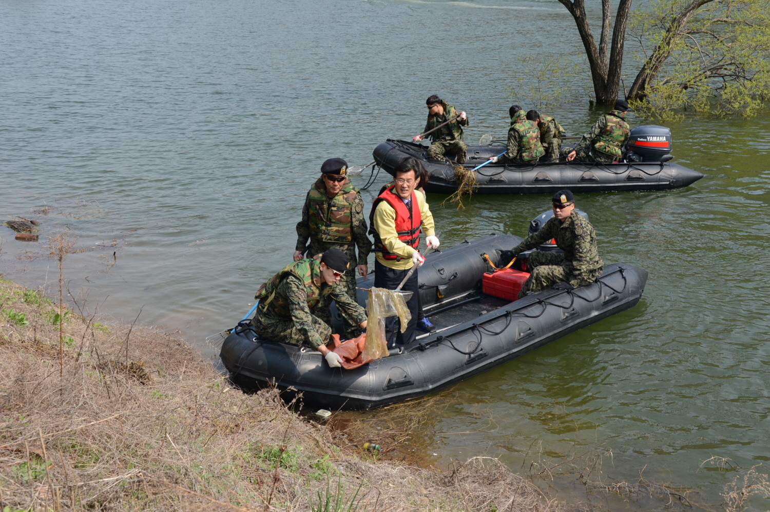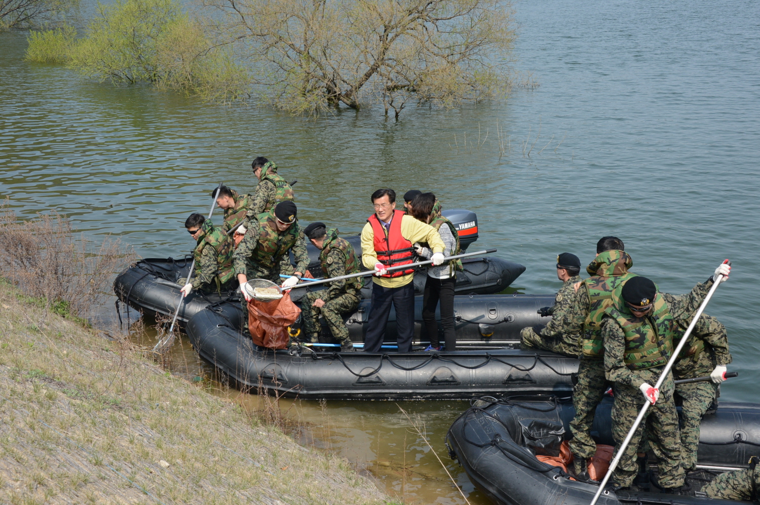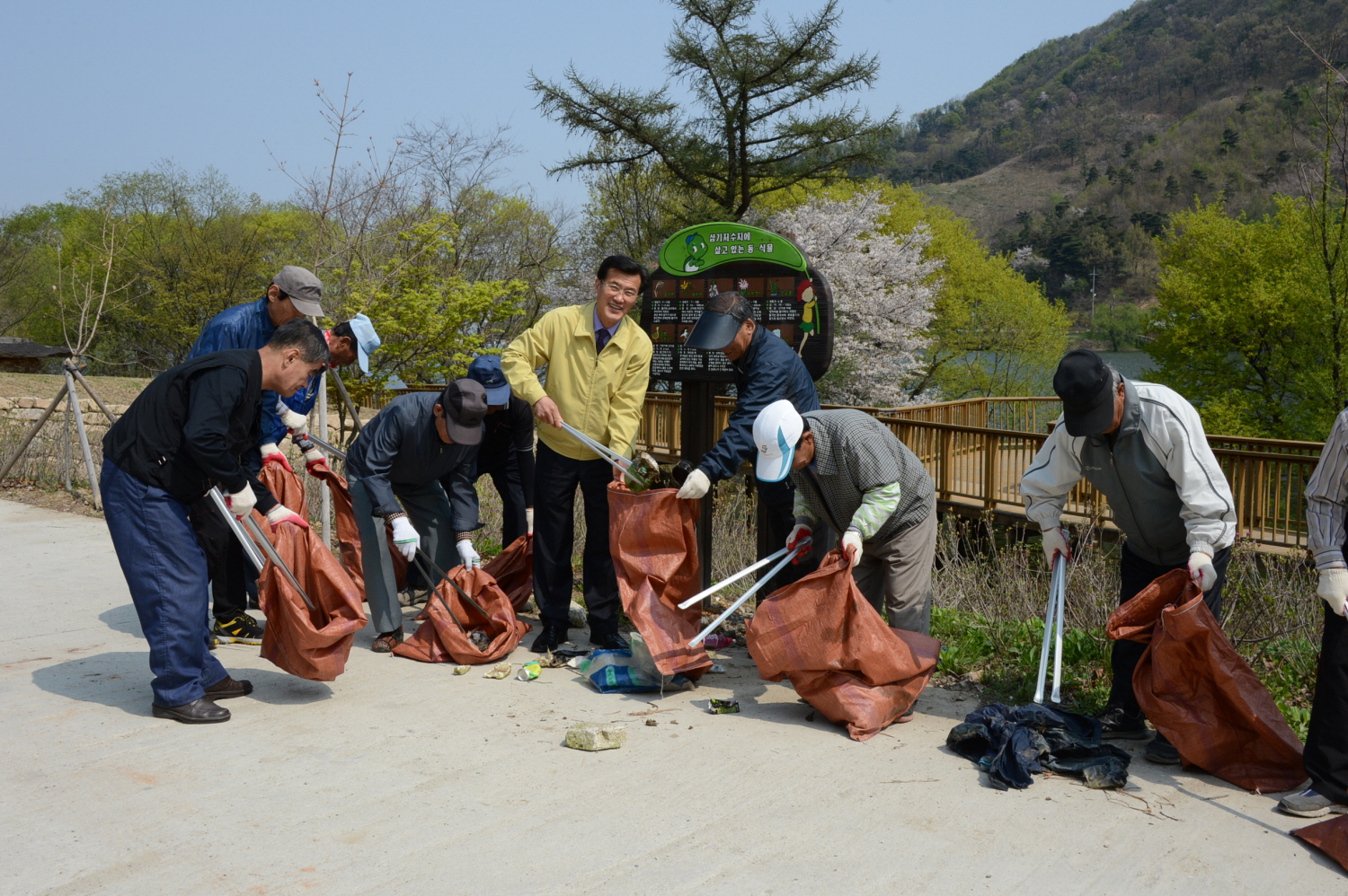 증평군과 13공수특전여단, (사)특전동지회증평지회 회원 등 60여명은 14일 삼기저수지 일원에서 민‧관‧군 합동으로 환경정화 활동을 실시했다. [보도자료실 참조]