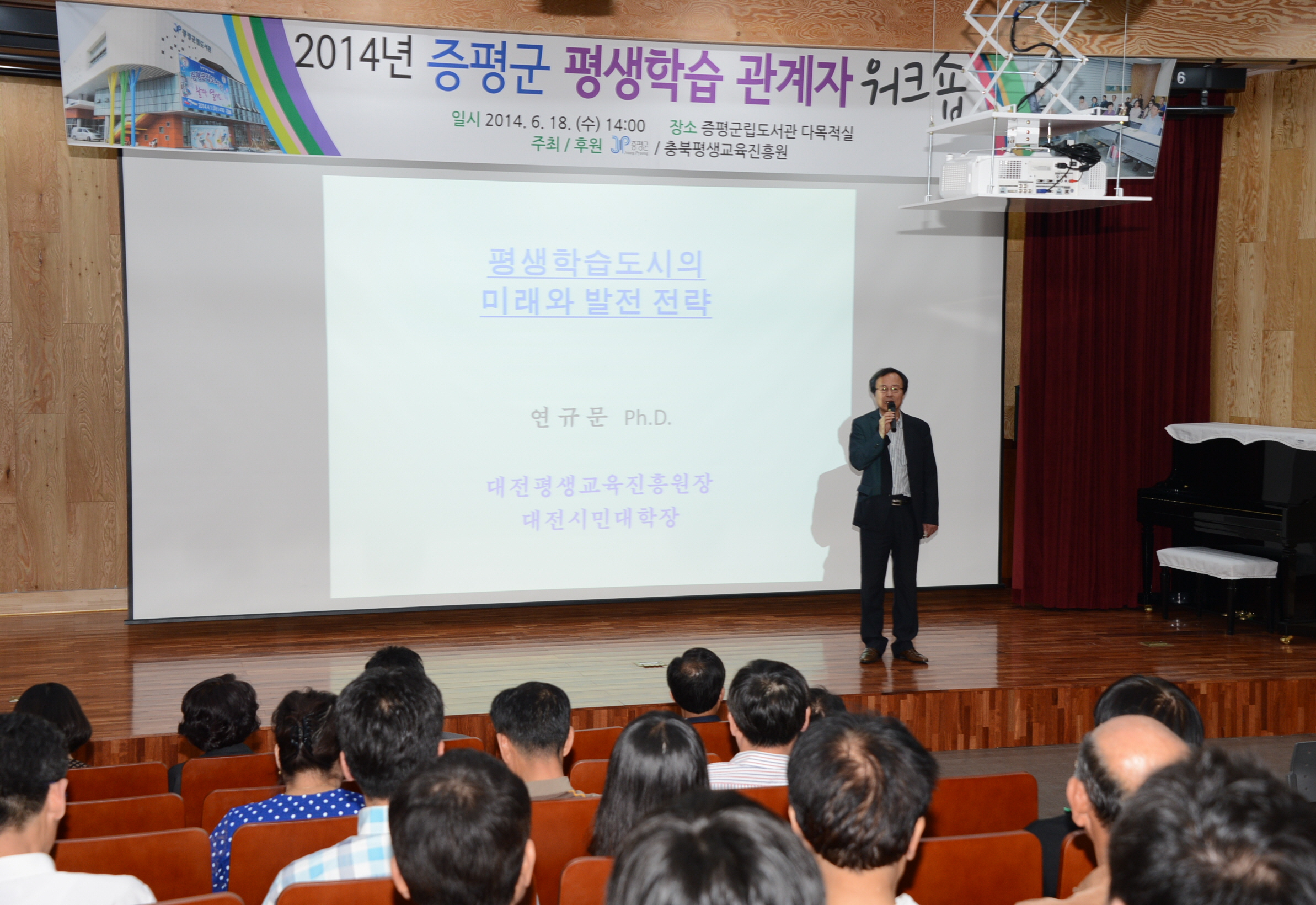 증평군(군수 홍성열)은 18일 증평군립도서관 3층 다목적홀에서 평생학습 기관과 동아리 및 인근 시·군과의 파트너십 구축을 위한 2014년 평생학습 관계자 워크숍을 개최했다. [보도자료실 참조]